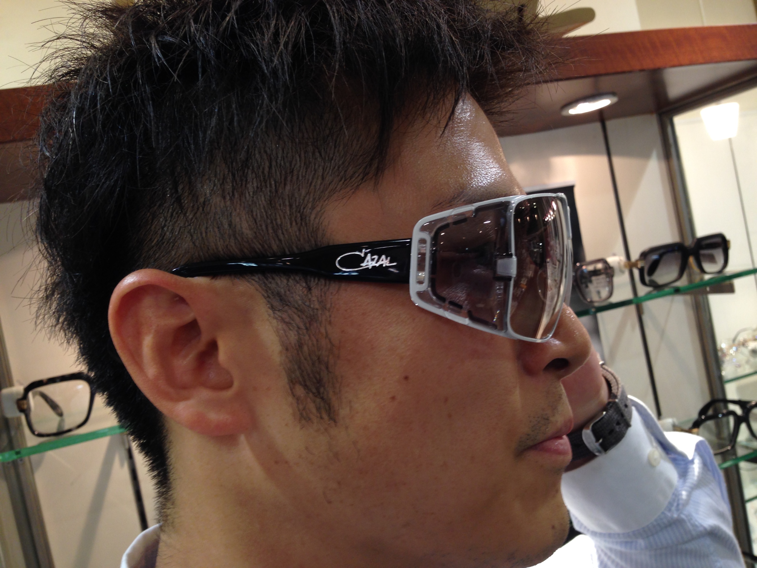 ツーブロックのヘアスタイルが、CAZALのラグジュアリーなテンプル(ツルの部分)を綺麗にひきたてています。
