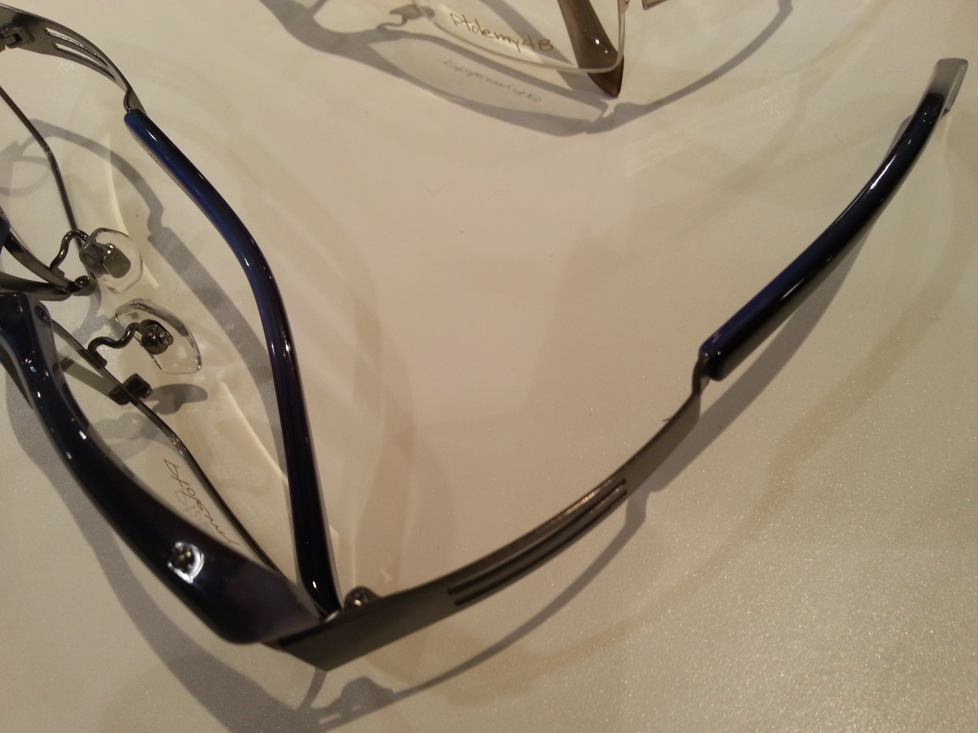 ベーターチタンのテンプルに中心部分を薄くする事でより弾力性を持たせ