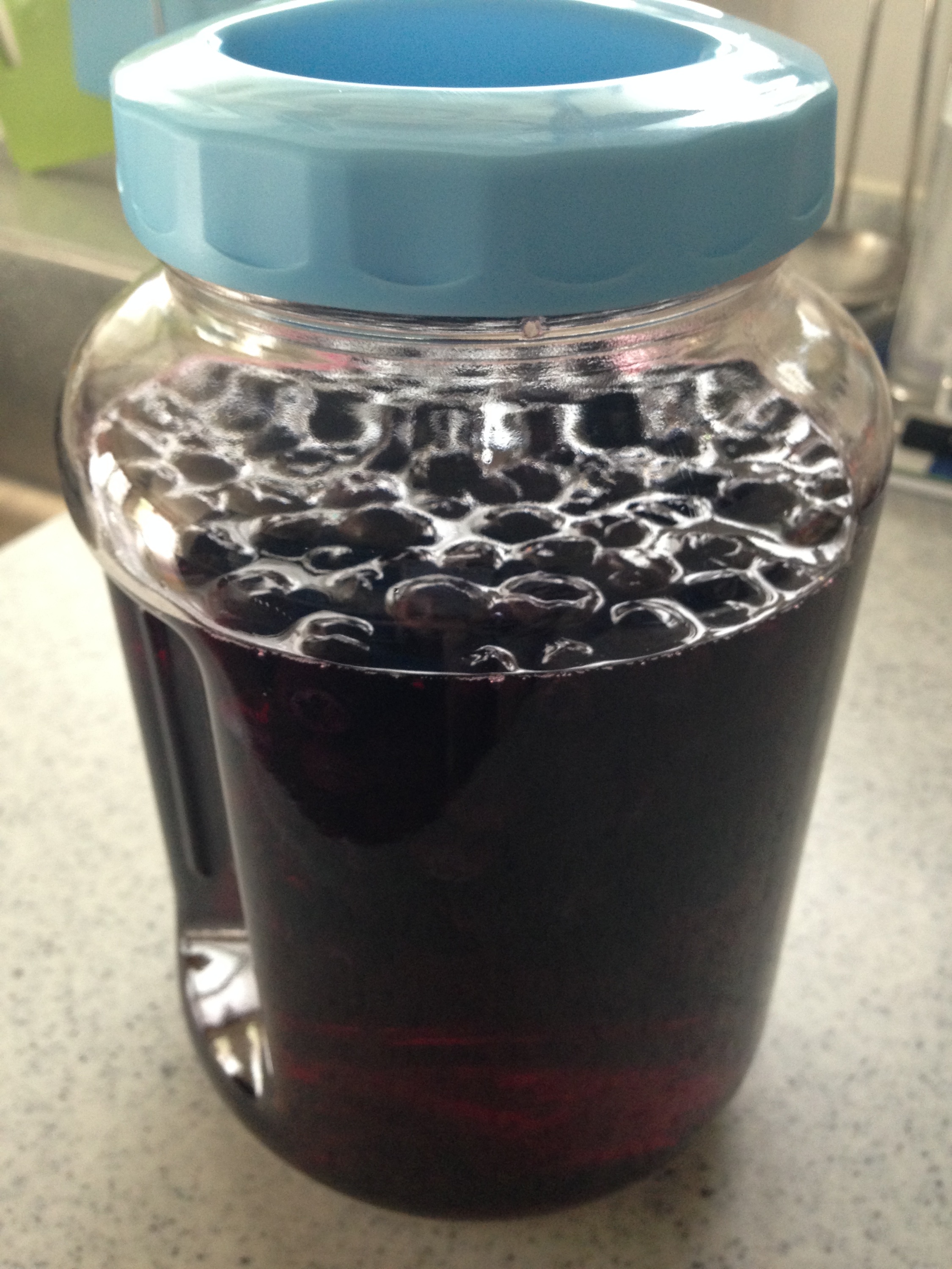りんご酢と氷砂糖にブルーベリーを3週間漬けてできあがりです。