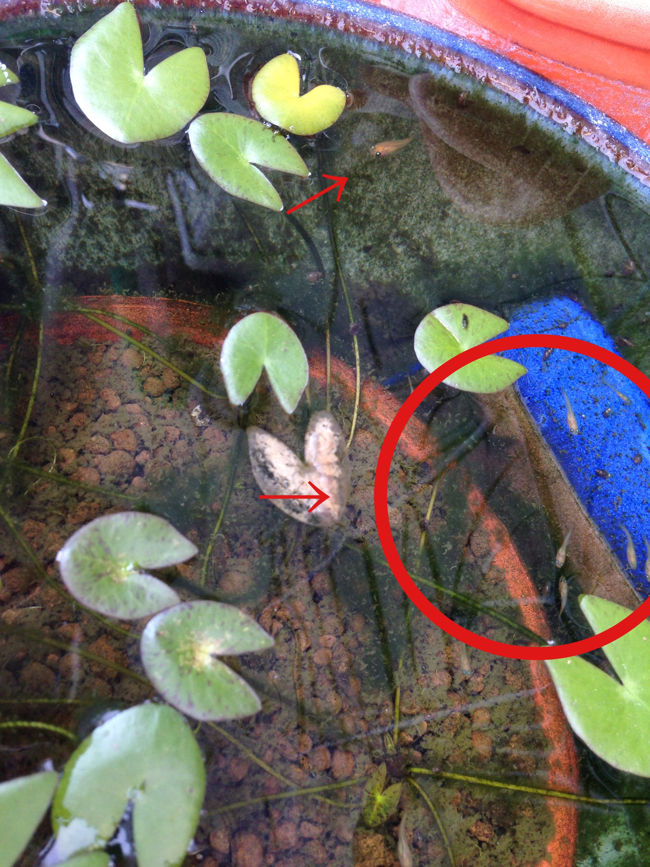 睡蓮鉢では、ボウフラ除けの為メダカを飼っています。今年生まれたかわいいメダカ達。日に日に大きくなっていきます。