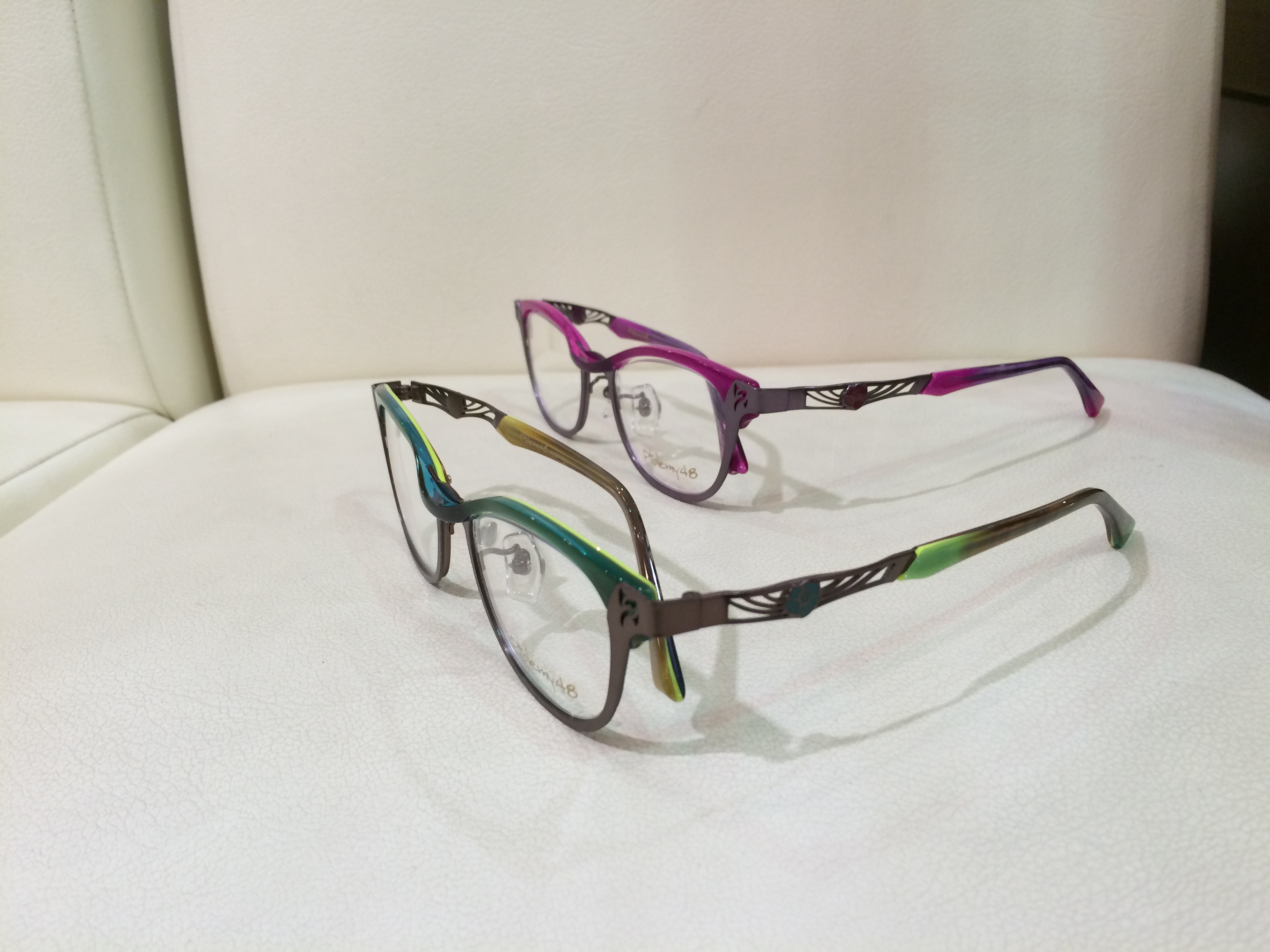 チタンフレームにアセテートやセルロイドを組み合わせたコンビネーションフレームです。
