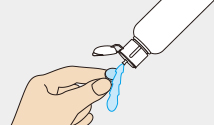 目からはずしたレンズを手のひらの上にのせ、用剤数滴たらし、レンズの両面を各20回程度、指の腹で軽くこすり洗いします。