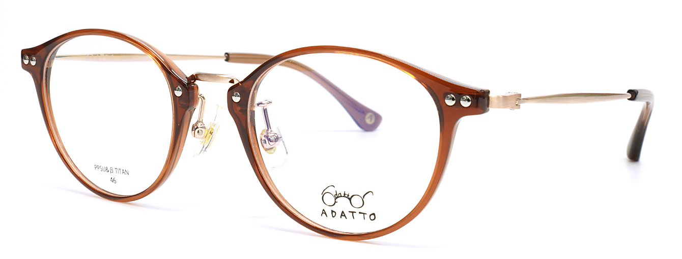 ボストン型の上部をストレートにした流行のクラウンパント型は、掛けるだけでトレンドスタイルが出来上がります。フロントを止めるメタルパーツがクラシックテイストをプラスしています。フロントは軽量なウルテム樹脂、テンプルは弾性に優れたβチタン製です。レンズ付 14,300円(税込み)在庫僅少
