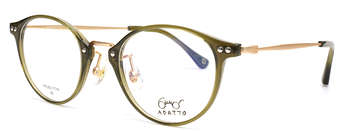弾性樹脂を使用したコンビネーションフレーム。デザインは人気のクラッシック系ですが、樹脂を使用することで細身かつ軽量に仕上がっています。レンズ付 15,400円(税込)