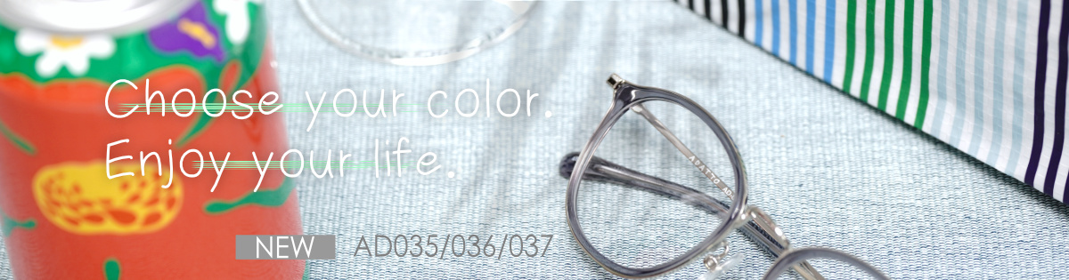 ラウンドに近いオーバル型の優しく可愛らしいデザイン。ハーフリムですがリムカラーが程よく表情を引き締めてくれます。テンプル先のカラーの切替もワンポイント。レンズ付 15,400円(税込)