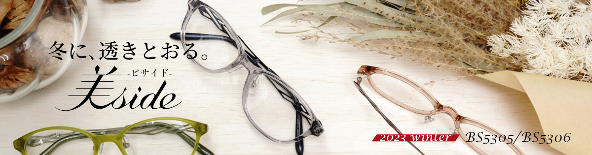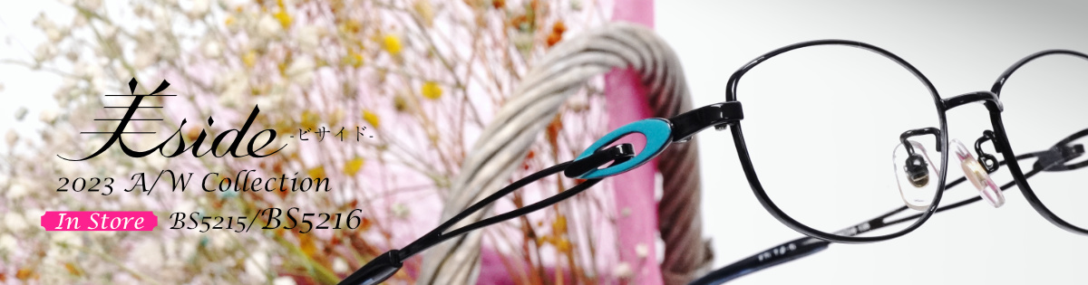 美サイドの新シリーズは、フロントがアセテート、テンプルβチタンのコンビネーションフレーム。フロントはクリングス付で調整が可能。テンプルはβチタンに抜き加工を施した上に、印刷で彩をプラスしラインが交差しているようなデザインになっています。レンズ付 23,100円(税込)完売しました