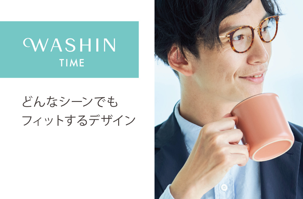 WASHIN Tシリーズ第3弾はユニセックスのクラシカルモデル。玉型はウェリントン、細身のテンプルラインはシンプルながらも高級感を醸しだしています。1カラー、3カラーはフロント転写となります。レンズ付 23,100円(税込)