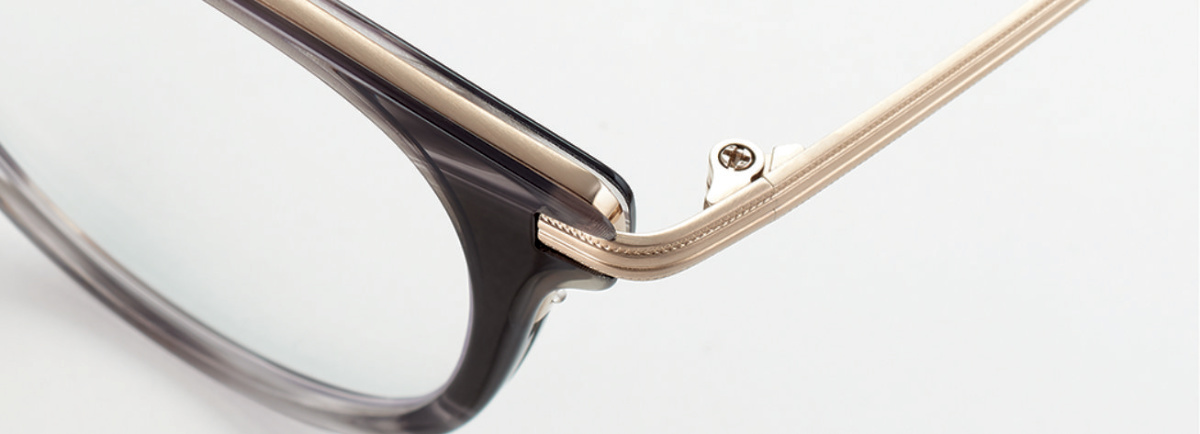チタンとアセテート素材のクラシックなコンビフレームです。フロントのプラスチックパーツがお顔の印象を立体的に見せつつ、ブリッジのメタルパーツが程良い「抜け感」を演出してくれます。ビジネスやカジュアルなスタイルにもフィットする振り幅の広さが魅力のフレームです。レンズ付 25,300円(税込)
