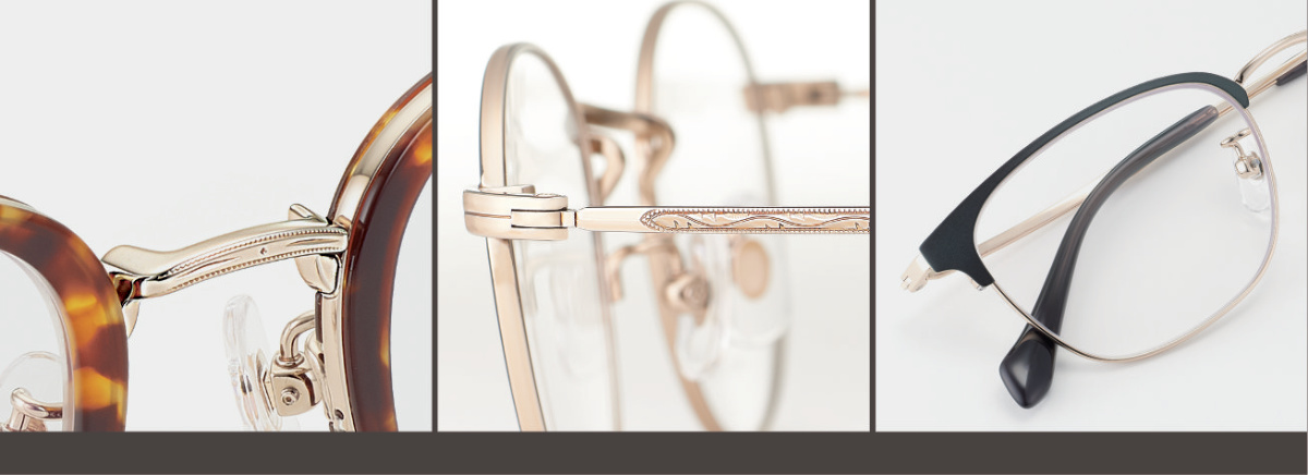 バランサーシリーズ第1弾。テンプルβチタンでモダンバチ先を太くし、重心を耳側に寄せることでメガネのズレ落ちを防ぐ最高のバランスを実現しました。フロントリムとエッジの効いたヨロイにミル打ち模様を施しシンプルに装飾しています。レンズ付 25,300円(税込)