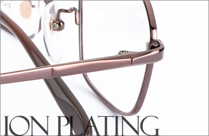 イオン化した蒸発金属を電圧による引力を利用してフレームに付着させたイオンプレーティング(IP)メッキを採用。非常に密着の良い膜が生成されるのでメッキ剥がれが起きにくくメガネが長持ちします。