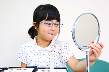 お気に召したフレームがあったら、そのフレームがお子様の顔に合わせてしっかりと調整・フィッティングできるものかどうか販売員に確認してください。