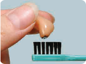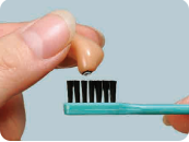 ブラシを下にして、耳あかプロテクタとベントを掃除します。