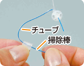 綿棒をチューブに差し込み、中の汚れを取ります。