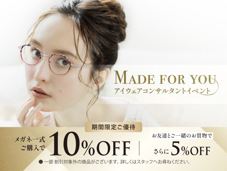 和真の人気企画、「MADE FOR YOU アイウェア コンサルタントイベント」が3月より店舗限定でスタートします。専門知識と豊かな経験を元に和真のアイウェア コンサルタントが、あなたらしさを引き出す一本をご提案します。