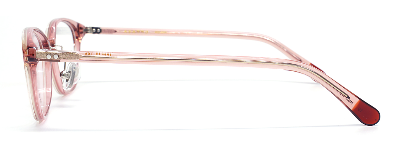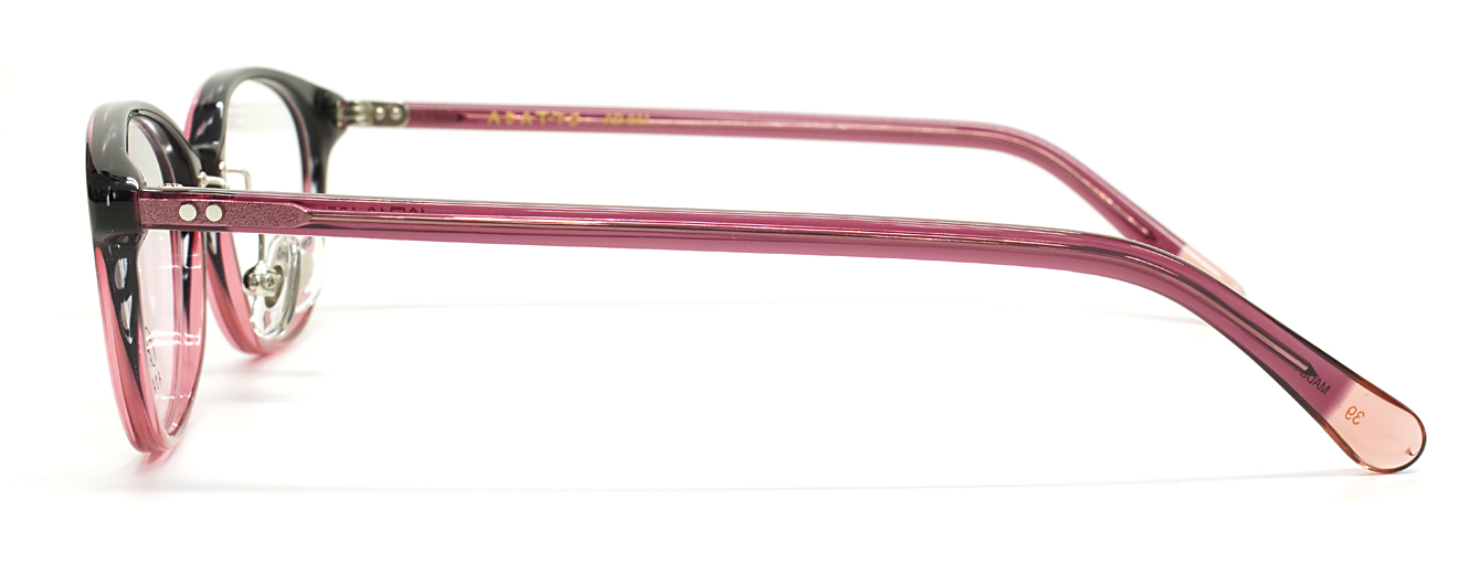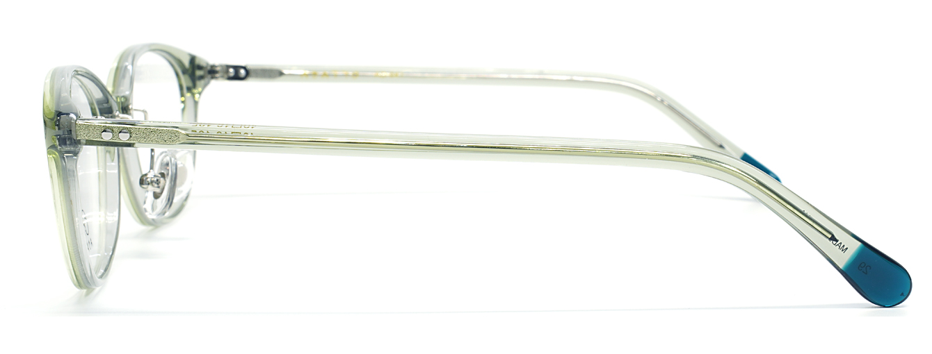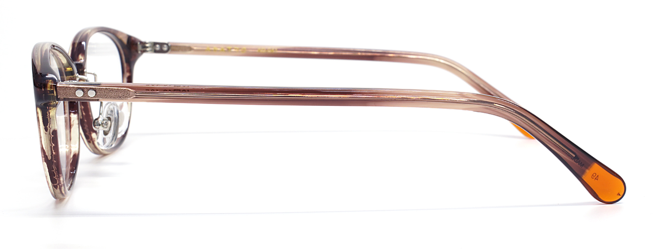 リムラインを細く仕上げたすっきりとしたセルフレーム。丁番パーツはカシメ手法にて取り付けられた手の込んだ作りです。