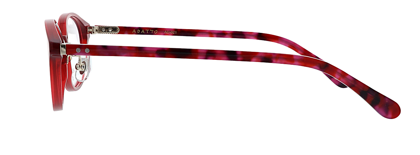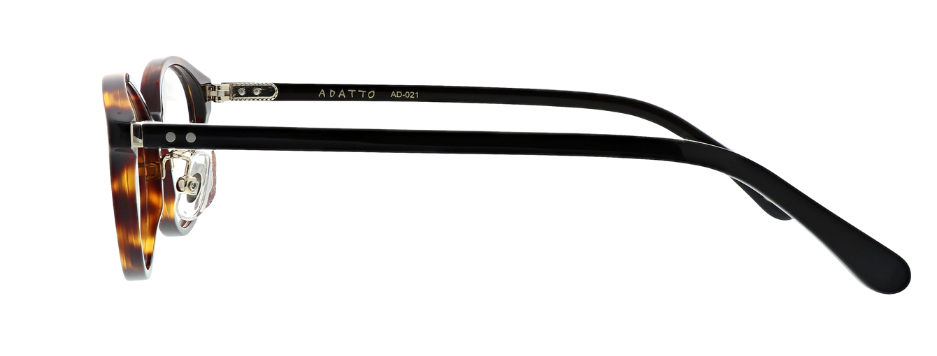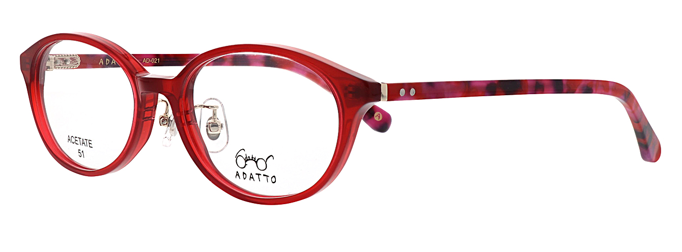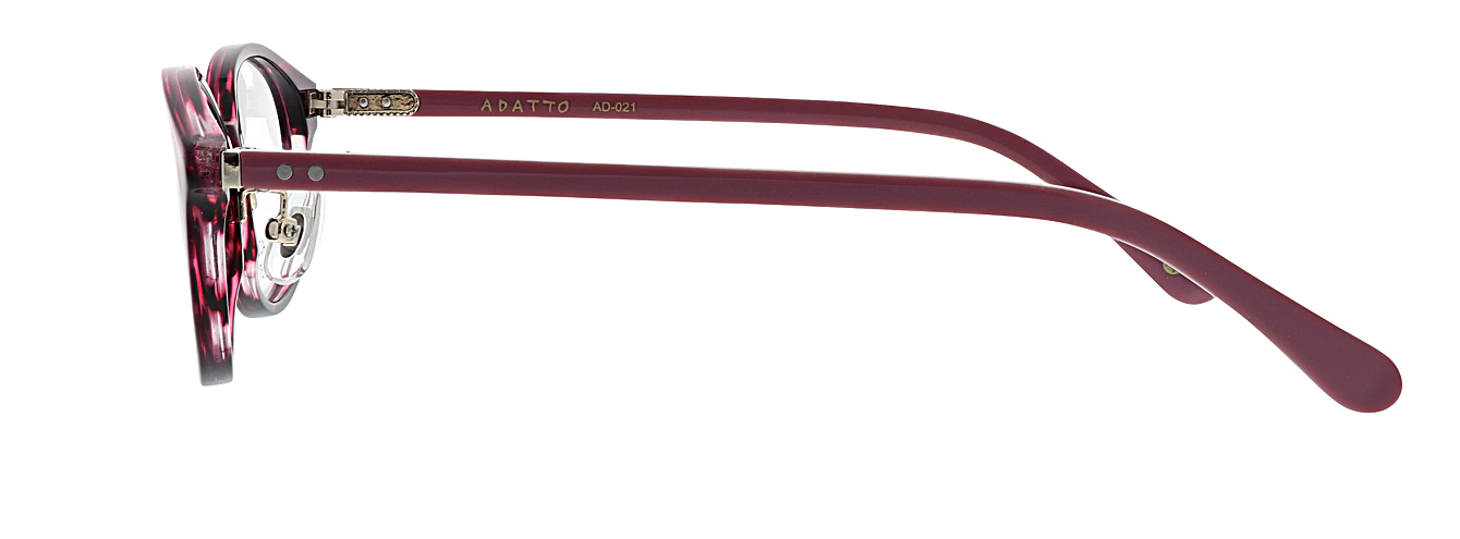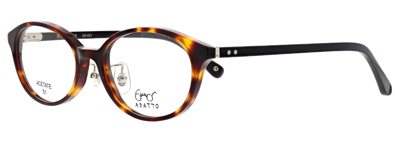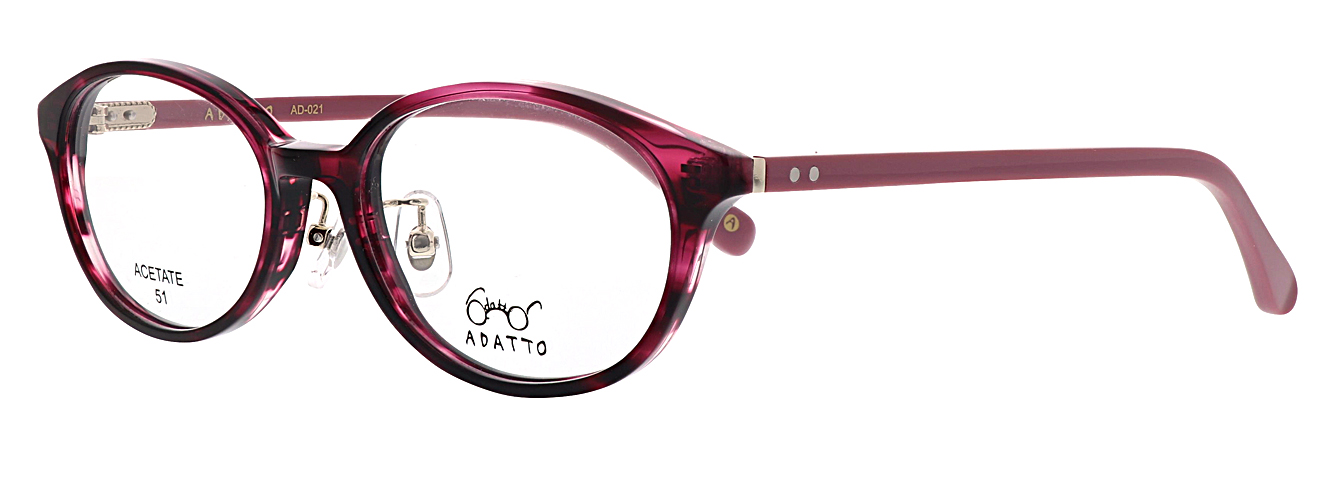 フロントとテンプルのカラーを違えたバイカラーがおしゃれなプラスチックフレーム。鼻当て付きなのでしっかりとフィッティングでき、ずれ落ちにくく掛けやすい設計です。テンプル合口のメタルパーツがさりげなくおしゃれ度をアップしています。フロントシェイプは丸みの強いオーバル型で愛らしいデザインです。