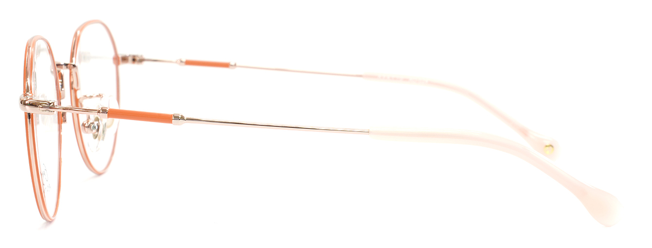 リムに入っている細いラインカラーがポイントのポップなデザイン。テンプル飾りとリムの内側にも同色のアクセントカラーを施したとってもカラフルでキュートなメガネです。丸みのあるクラウンパント型のレンズシェイプで今風なおしゃれが楽しめます。