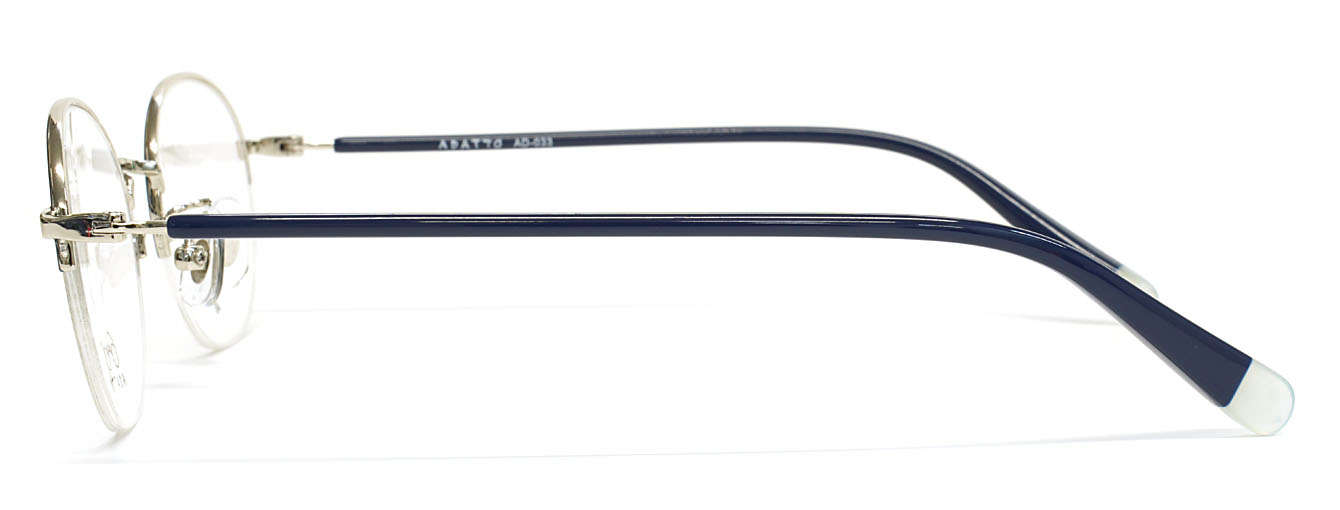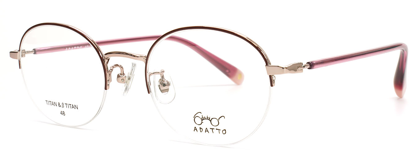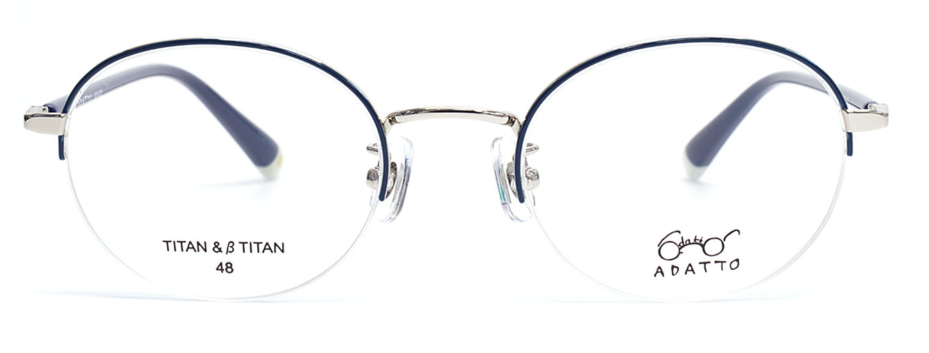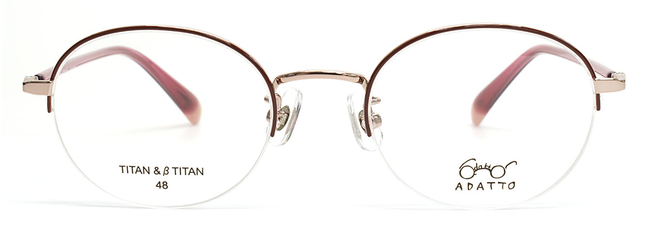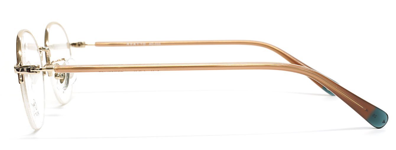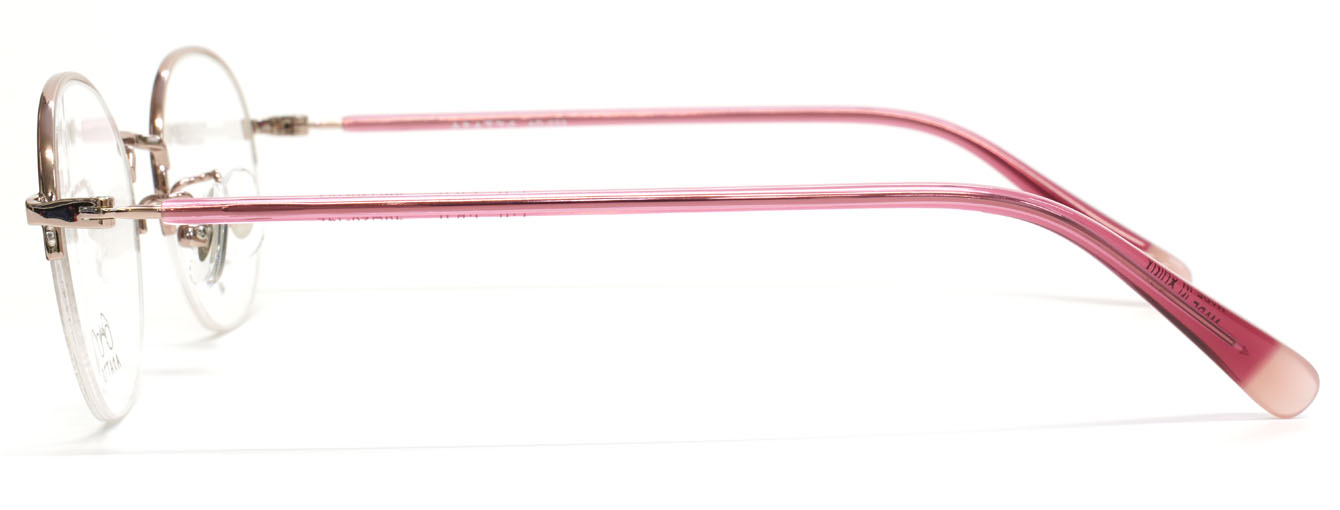 ラウンドに近いオーバル型の優しく可愛らしいデザイン。ハーフリムですがリムカラーが程よく表情を引き締めてくれます。テンプル先のカラーの切替もワンポイント。