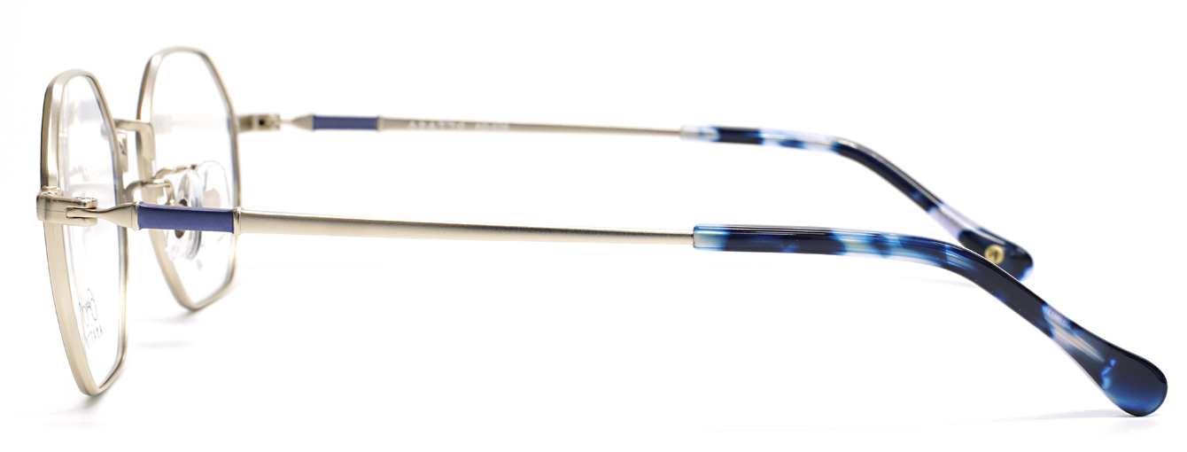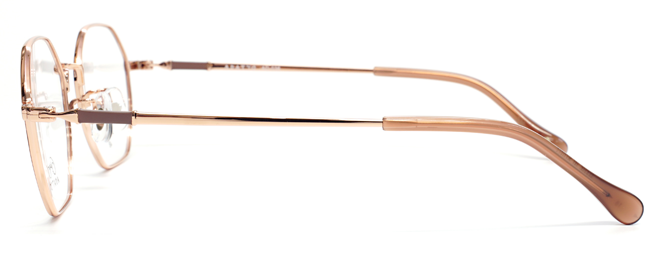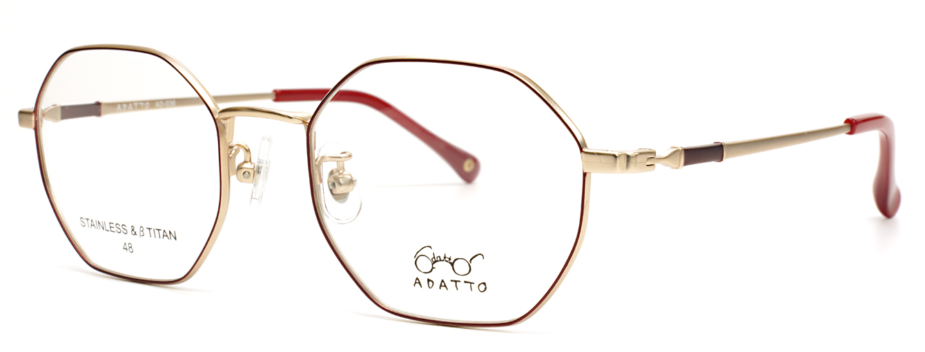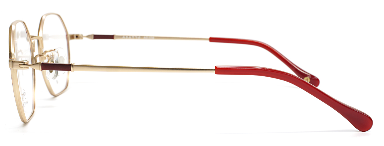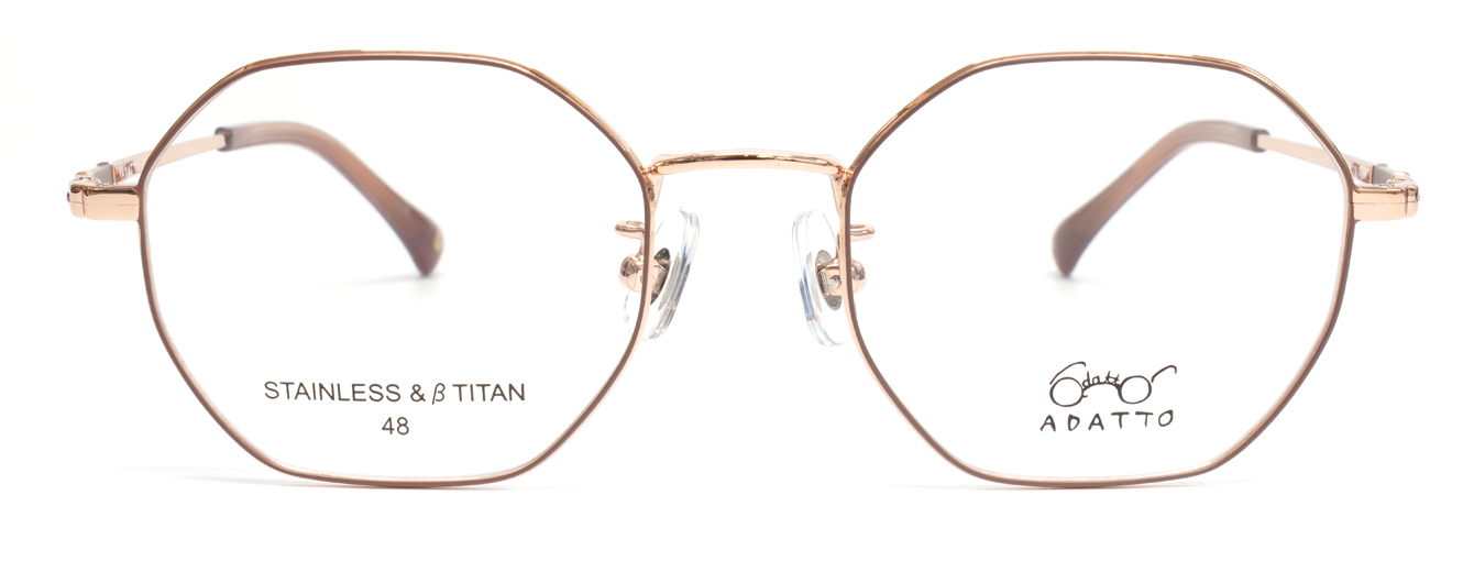 山型の特殊な形状のリムを採用し、その前面にだけカラーをのせることでうっすらとラインが見えるおしゃれなデザイン。多角形の玉型は個性的でおしゃれ度が上がります。