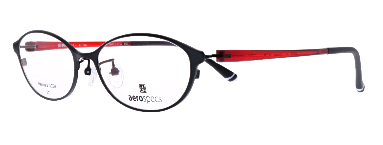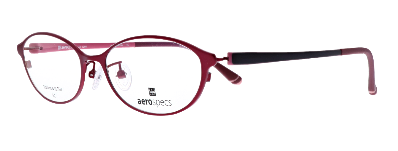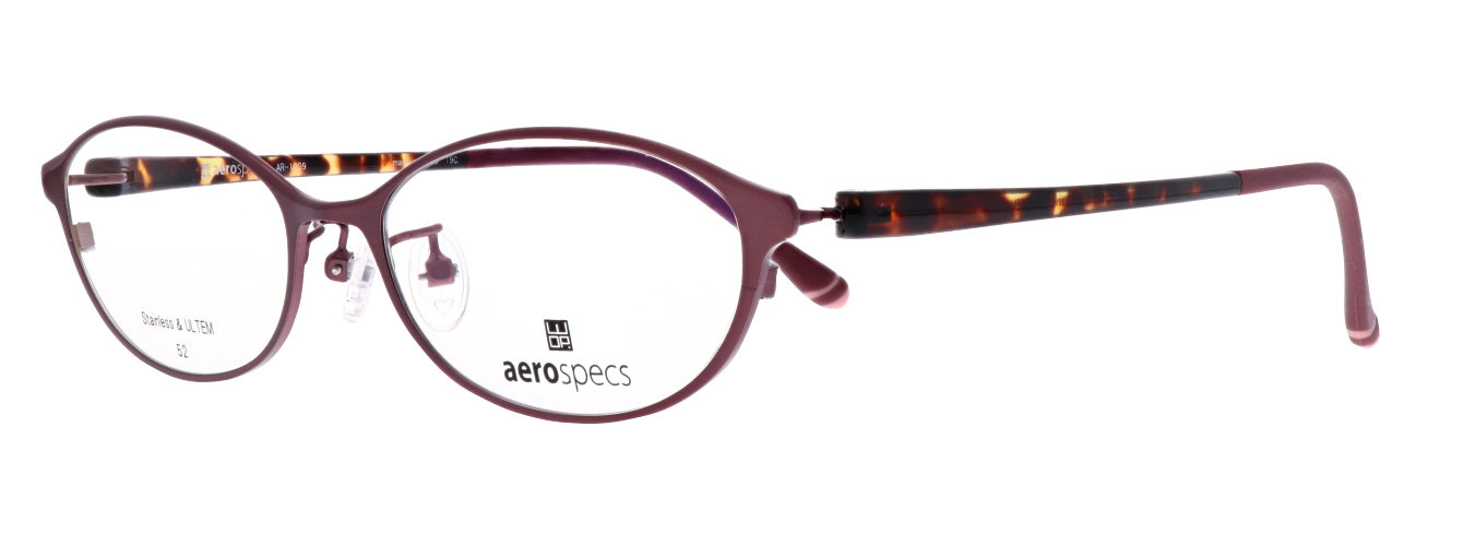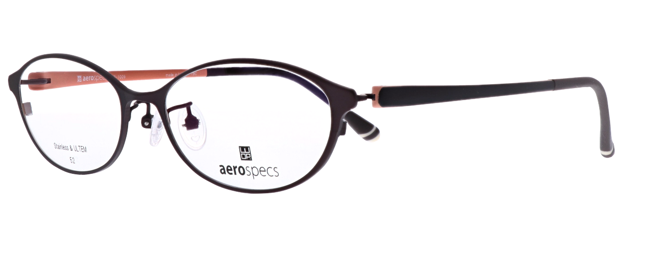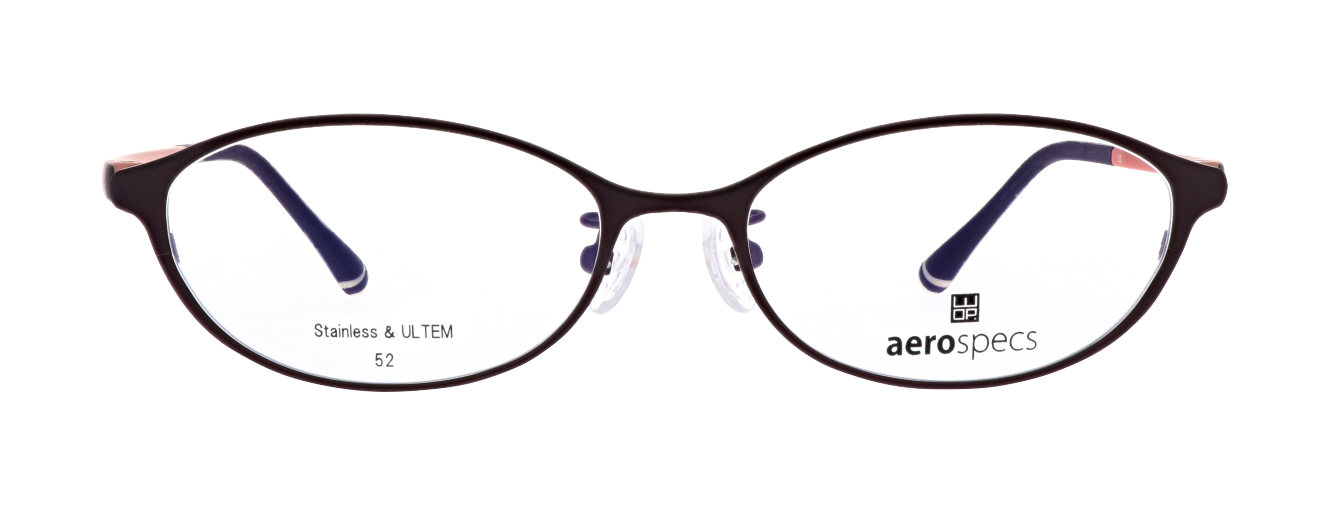 フロント:ステンレス、テンプル:ウルテム、シリコンパッド使用。丸みのあるヨロイパーツを採用し、より女性らしいデザインになっています。超軽量で超弾力、独創的なカタチで最高の掛け心地となっています。