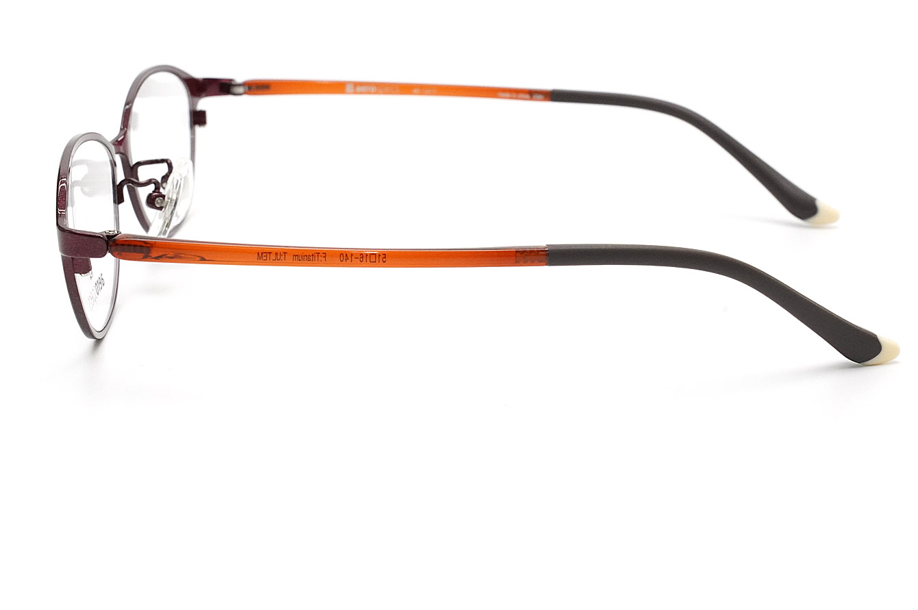 テンプルは超弾性樹脂ウルテム、フロントはチタン素材を採用した超軽量フレームです。スリムなオーバル型がすっきりとした印象で、フロントとテンプルのカラーコンビネーションはとても魅力的です。超弾力性のテンプルは最高の掛け心地を実感できます。