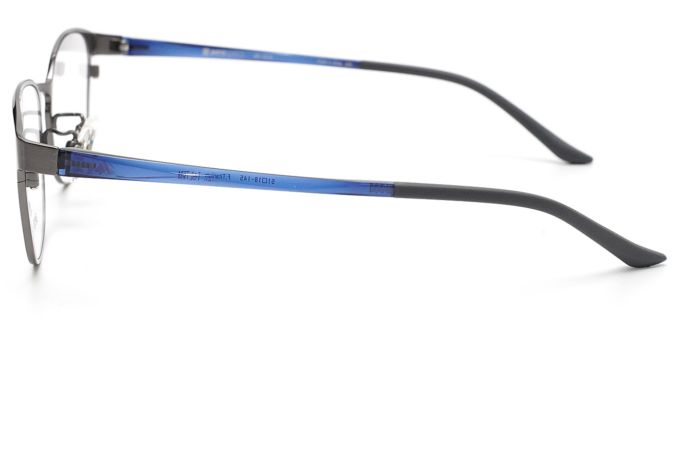 テンプルは超弾性樹脂ウルテム、フロントはチタン素材を採用した超軽量フレームです。フロントとテンプルのカラーコンビネーションはとても落ち着いたビジネスにも最適なカラーです。超弾力性のテンプルは最高の掛け心地を実感できます。