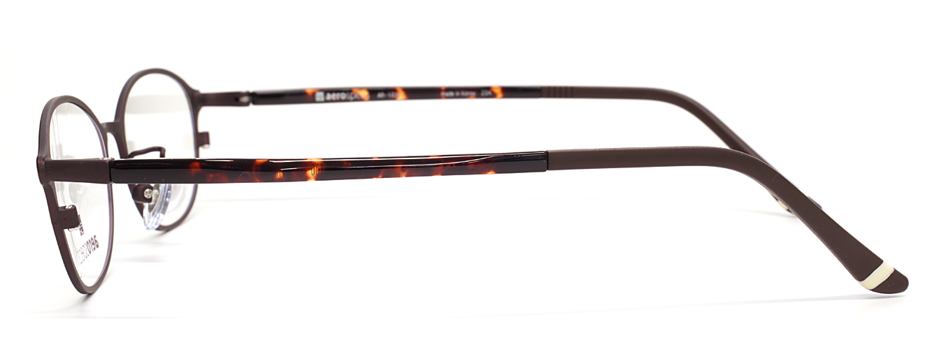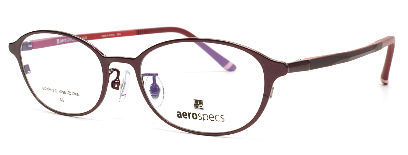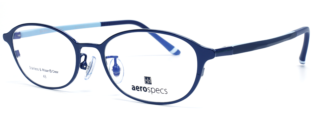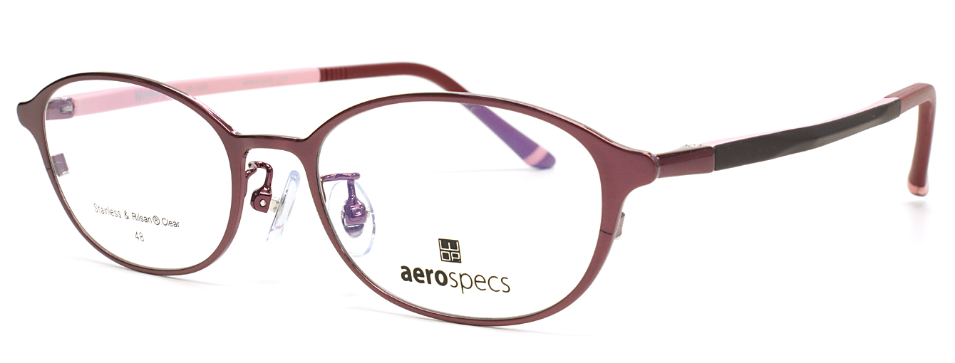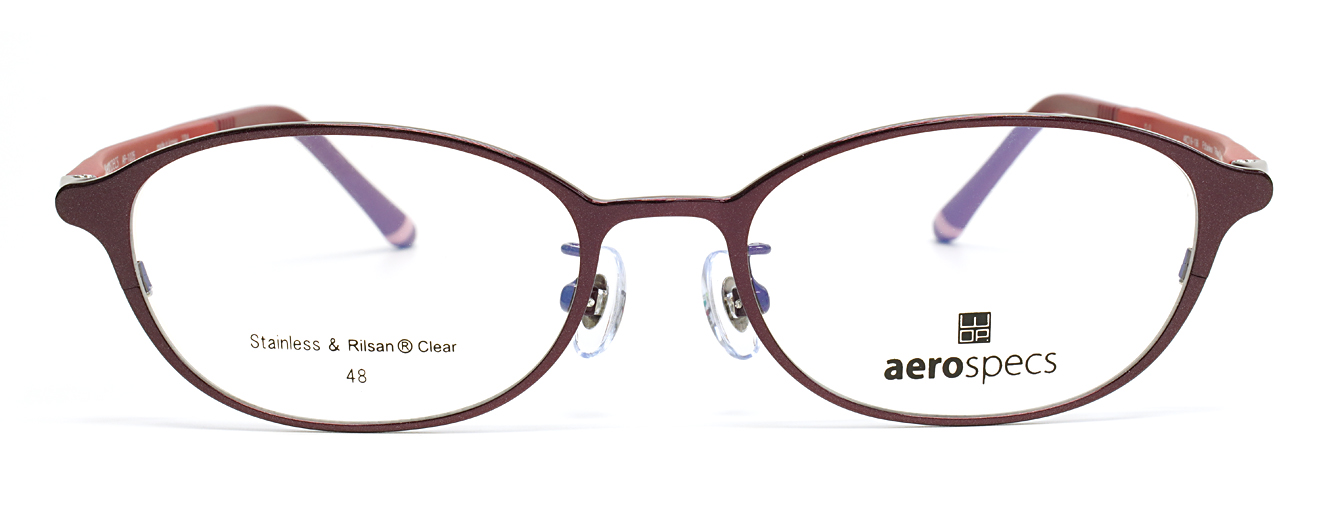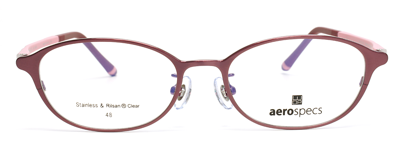 小顔の女性やティーンに向けたスモールサイズシリーズ。フロントはスリムなステンレスシートを採用した細みのラインで、すっきりとしたオーバル型は自然な印象です。テンプル素材は植物由来樹脂でサステナブル素材の「リルサンクリア」を採用。