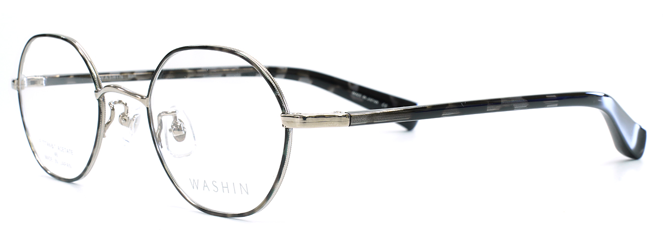 バランサーシリーズ第1弾。テンプルセル手でバチ先を太くし、重心を耳側に寄せることでメガネのズレ落ちを防ぐ最高のバランスを実現しました。フロントリムにミル打ち模様を施しシンプルに装飾しています。また、エッジの効いたヨロイ上下にもお洒落な模様をプラスしました。