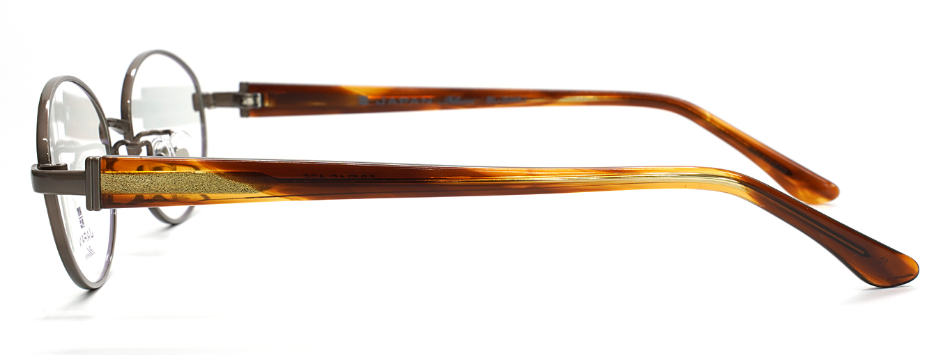 存在感のあるアセテートテンプルが横顔の印象を華やかにしてくれるフレームです。フロントはシンプルなオーバル系なので自然で掛けやすいデザインです。