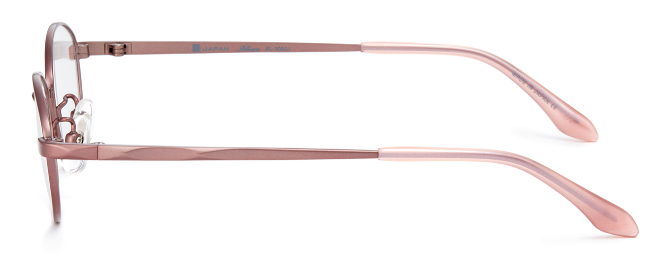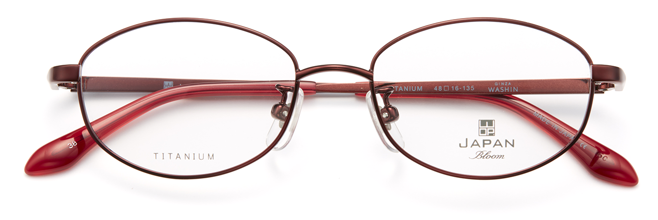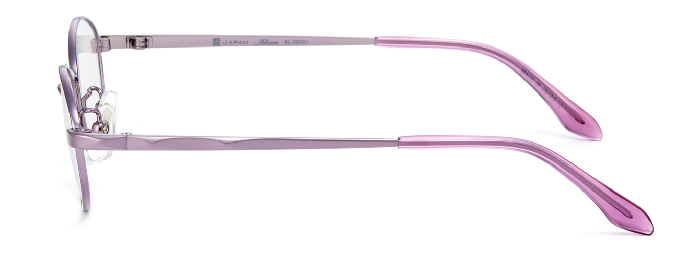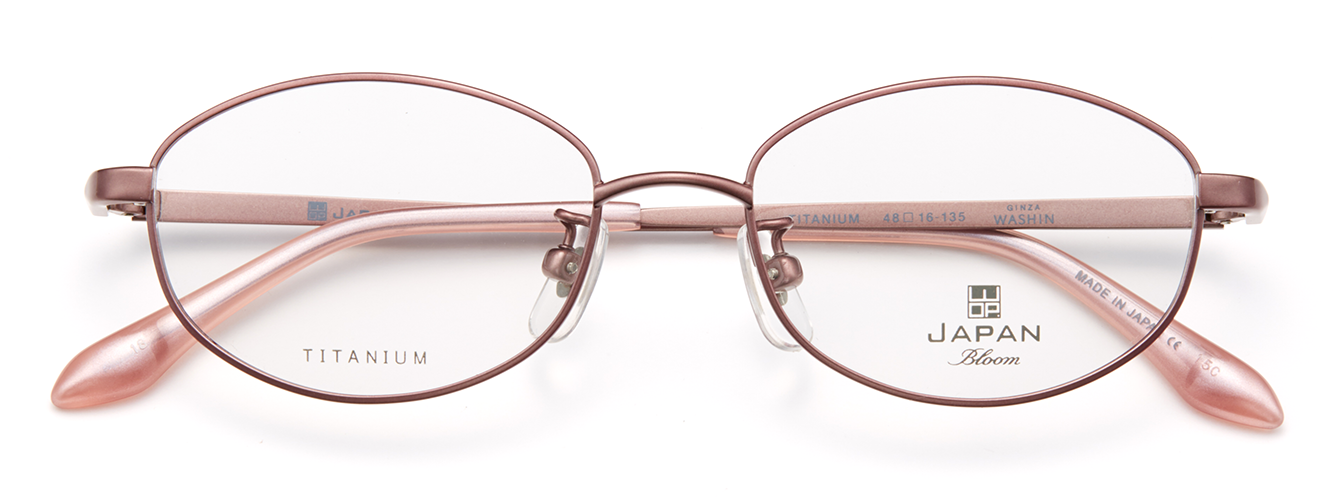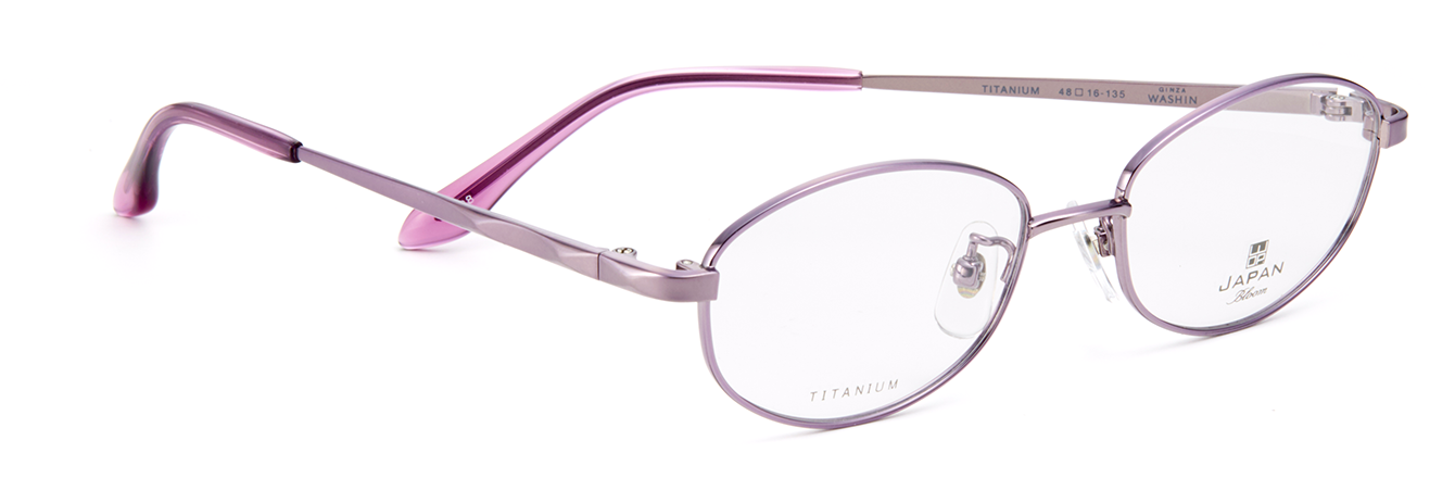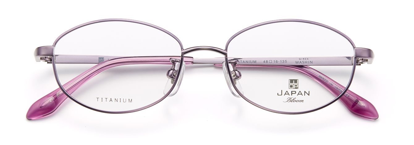 フレーム素材は軽量で丈夫なオールチタン製。テンプルはダイヤカット風仕上げになっており、ニュアンスのあるデザインです。玉型は小さめのサイズ設定ながら天地幅をとった、遠近両用にも安心なデザインです。
