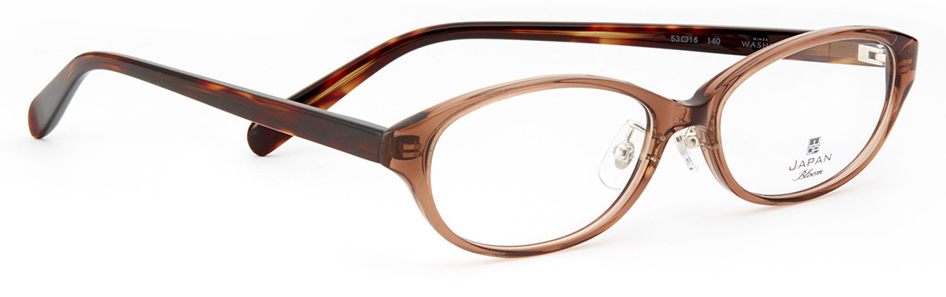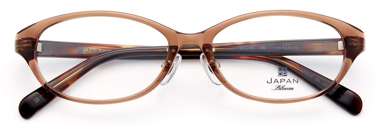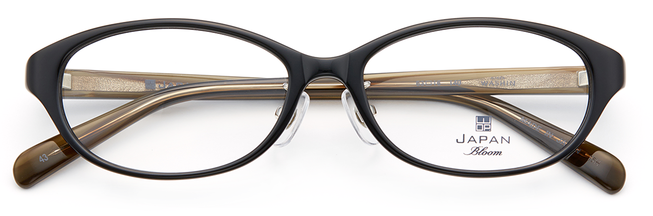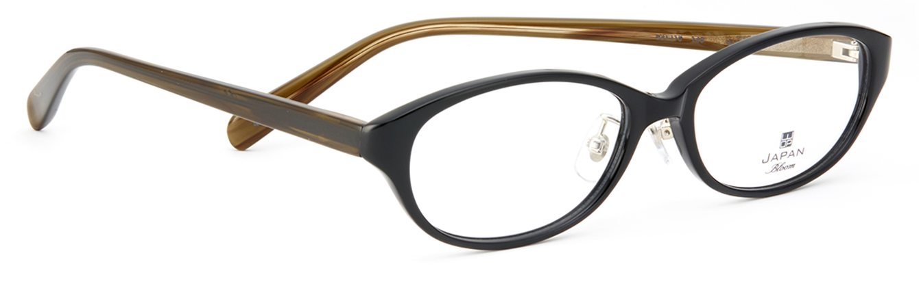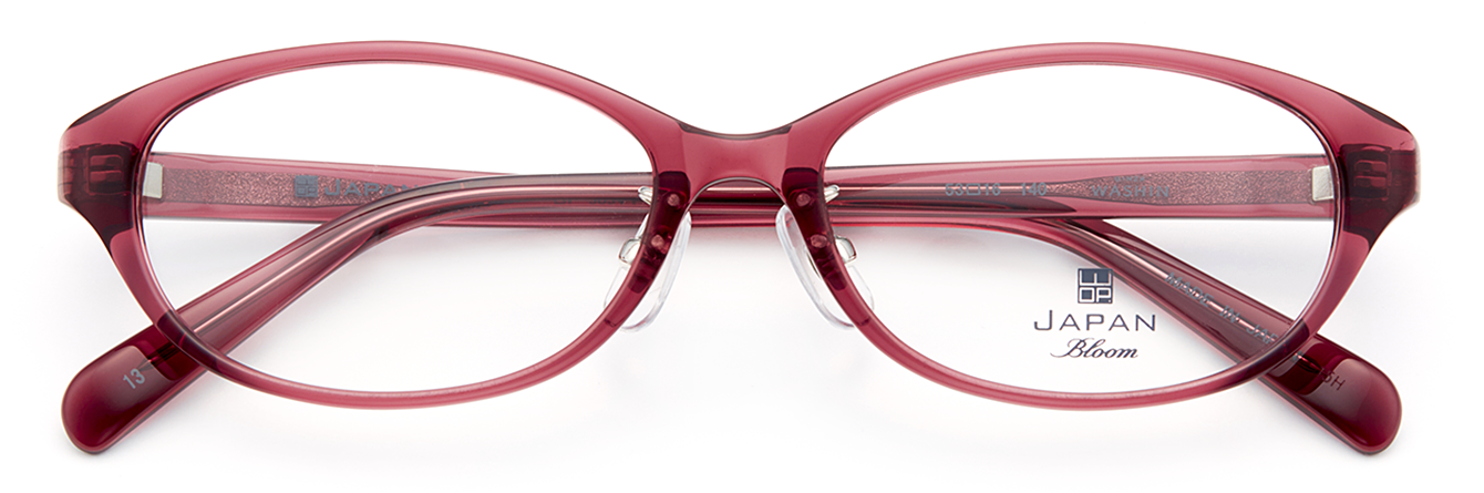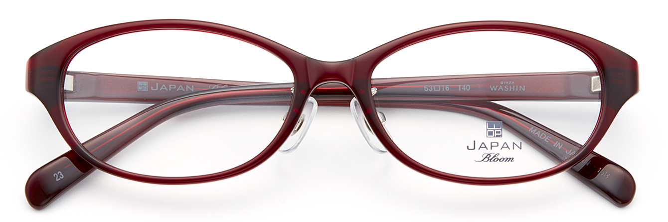 クリングスパッド付きのアセテートフレームなので細やかな掛け具合の調整が可能です。天地幅のあるオーバル型ですので遠近両用レンズにも無理なく対応できます。