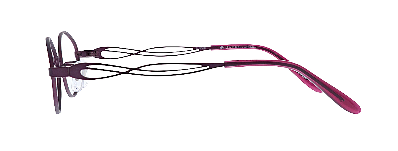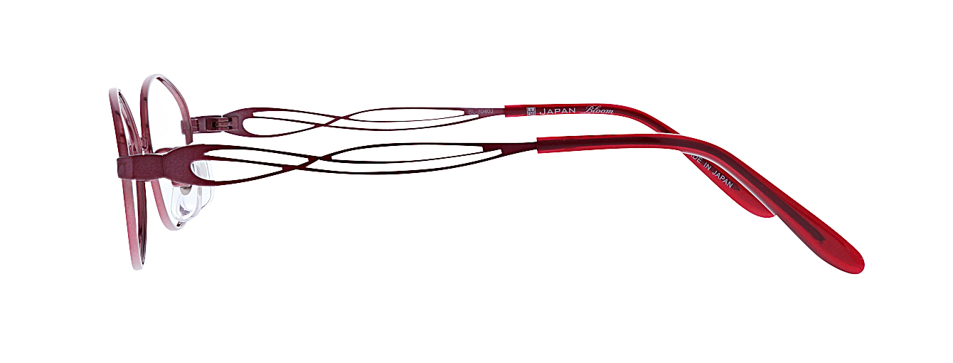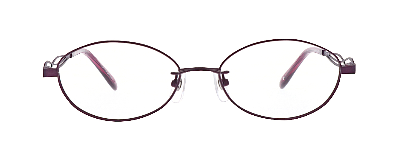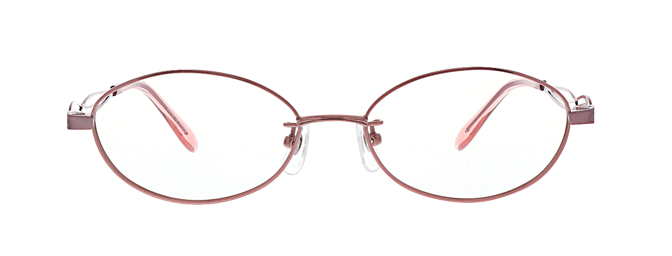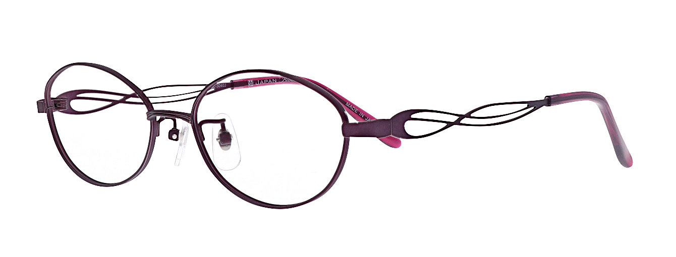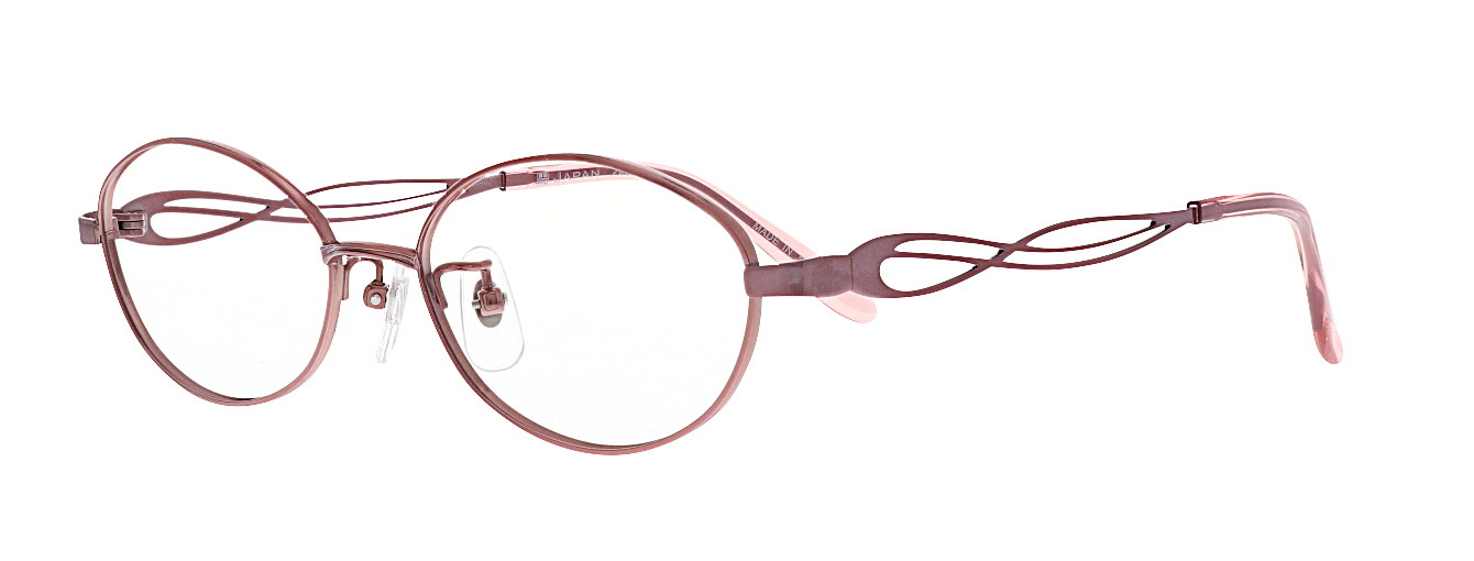 βチタンの抜きテンプルが華やかで愛らしいデザイン。軽くしなやかで掛け心地もいいフレームです。