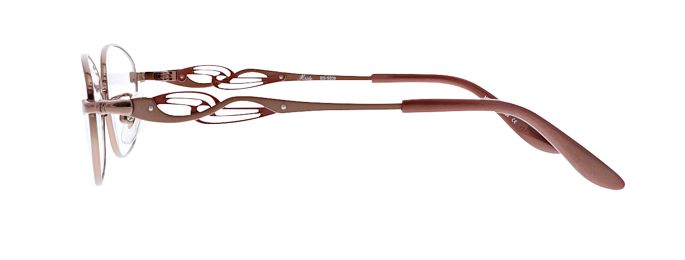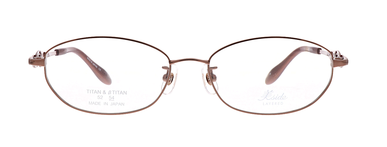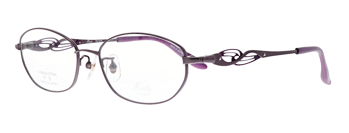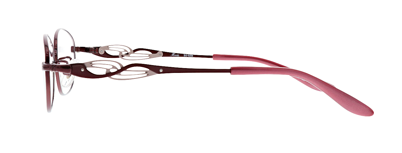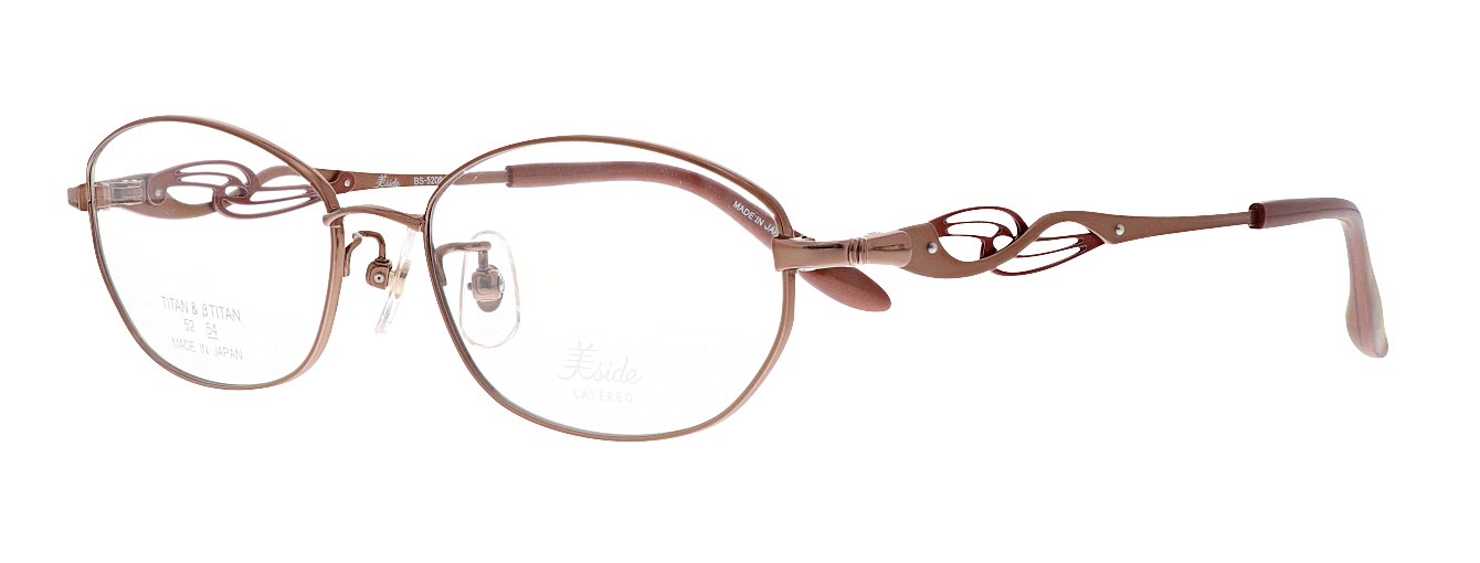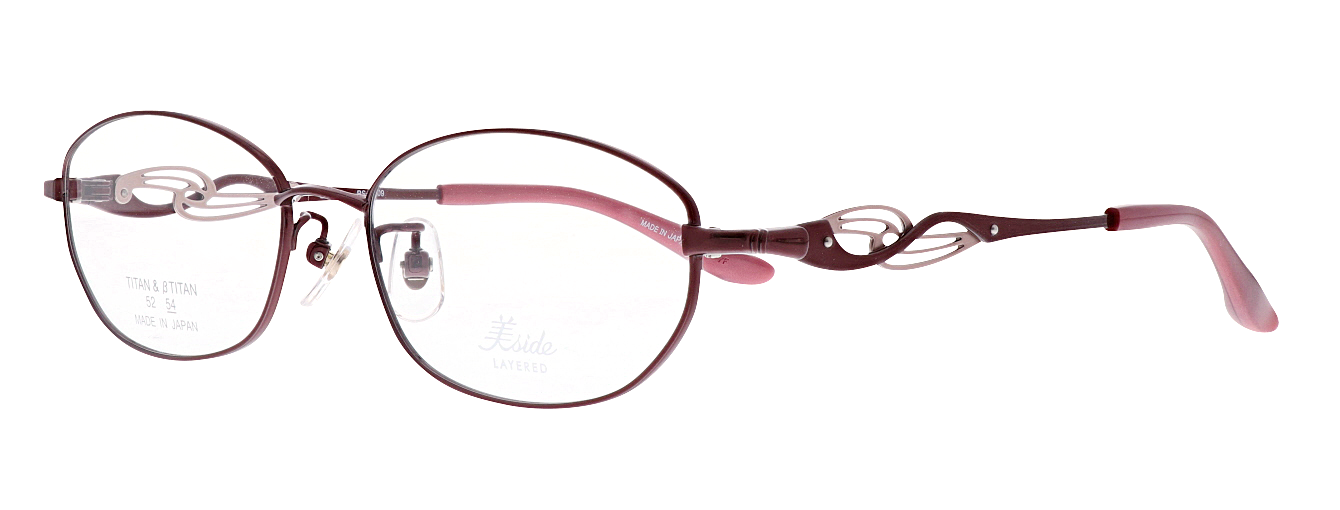 テンプルに繊細な抜きデザインの飾りパーツを重ね合わせた、印象的なサイドデザインが横顔を引き立てます。流線形の飾りパーツは華やかでエレガントな雰囲気を演出します。