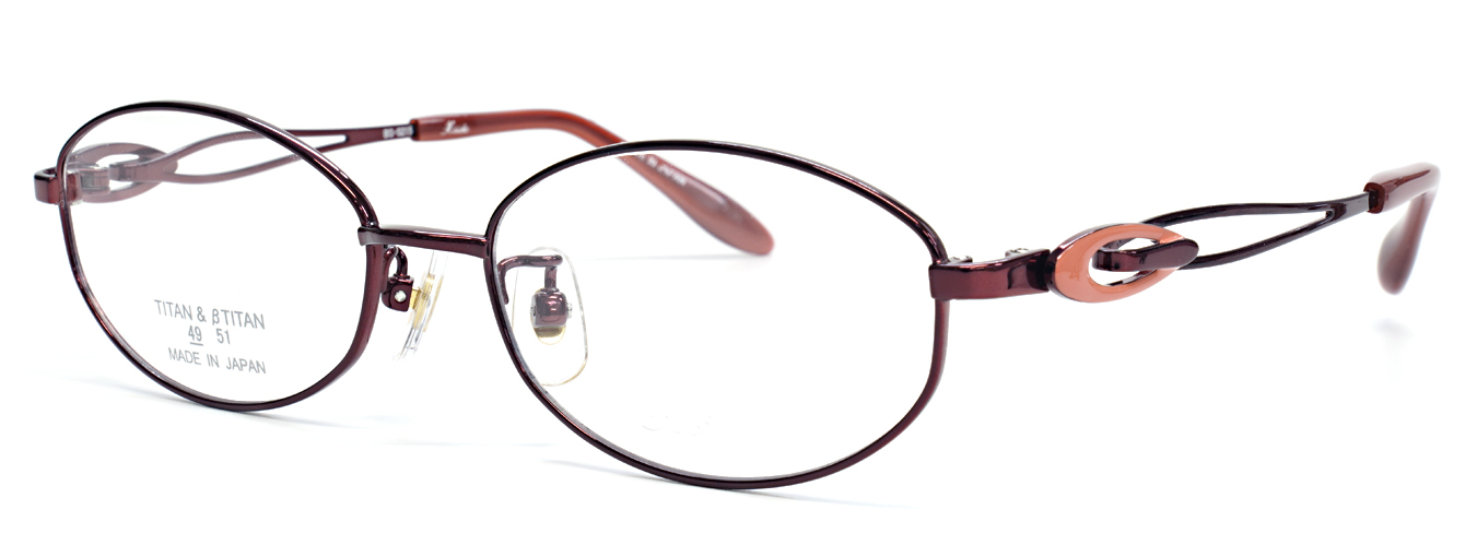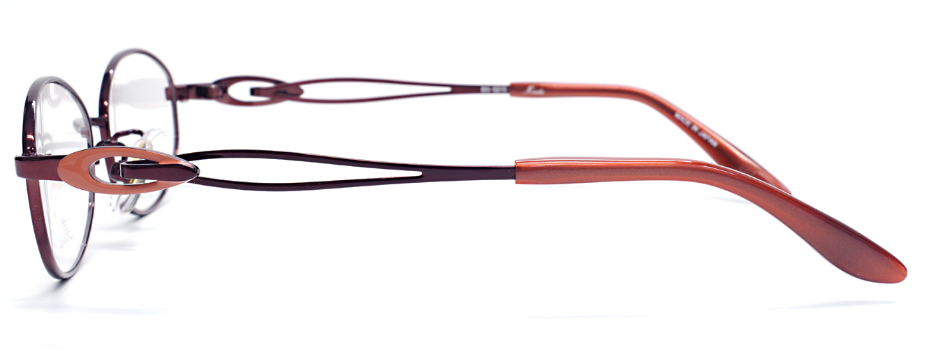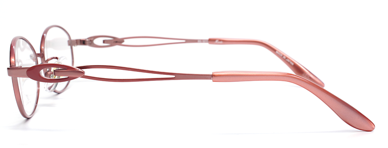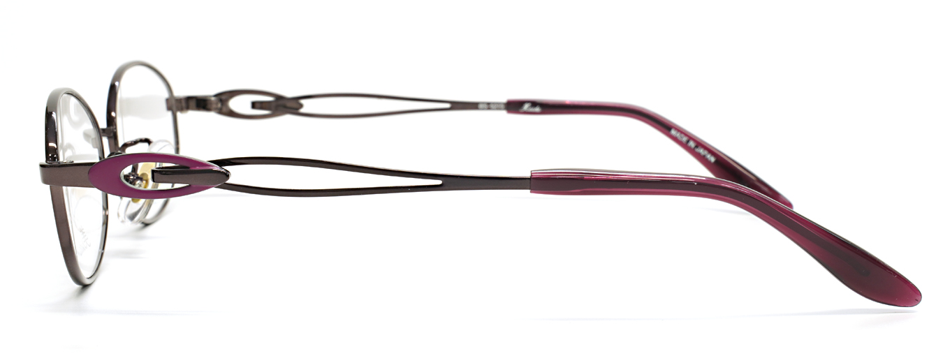 サイドの楕円形のモチーフ部にアクセントカラーをのせたデザインが横顔を華やかに彩ります。テンプルの美しい曲線はデザイン性だけでなく適度なバネ性の掛け心地を生み出しています。