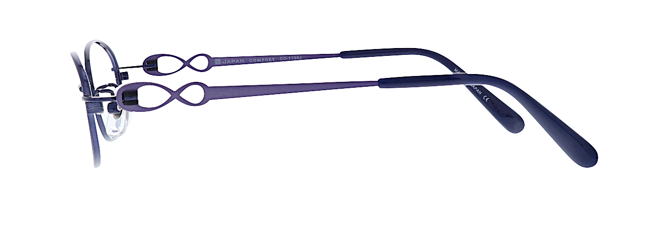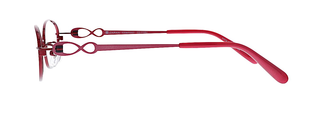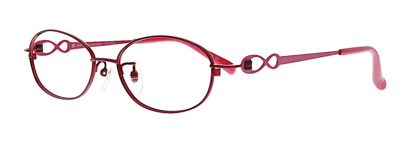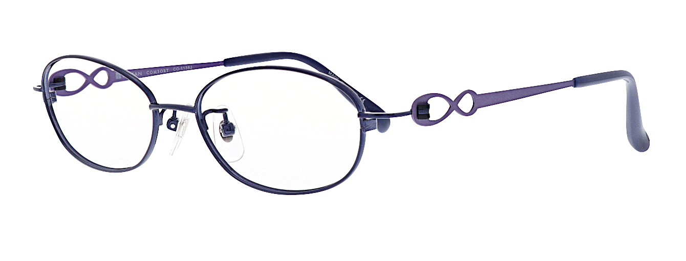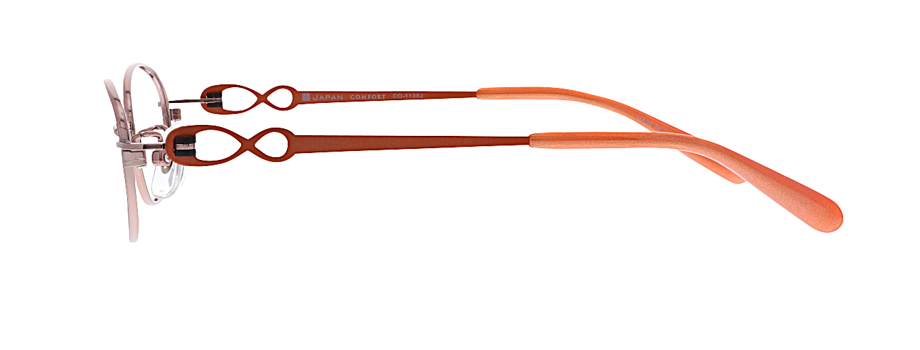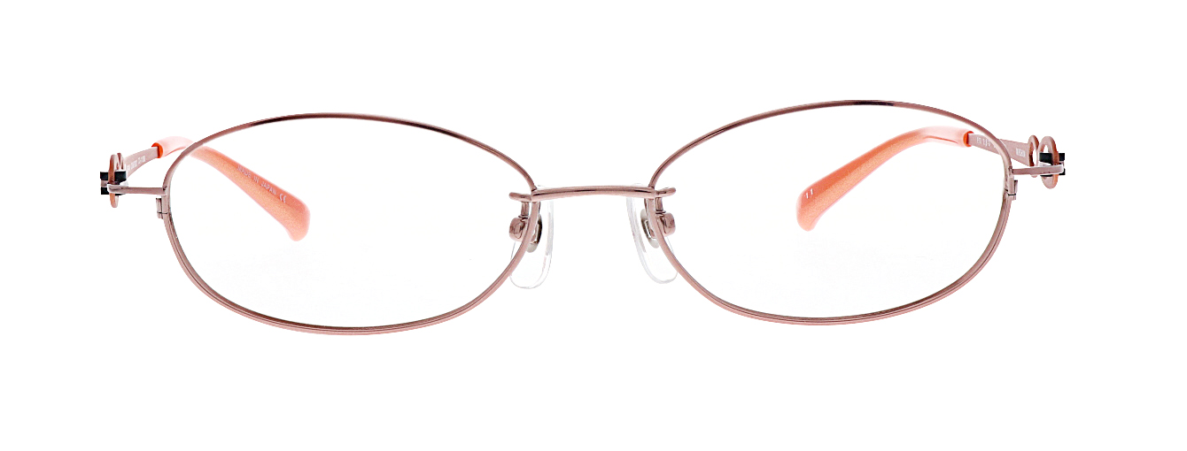 ネジを使わない、樹脂製の丁番パーツを採用したシリーズ。ネジ式の丁番にくらべゆるみにくく、スムースな開閉が持続します。テンプルはリボンのような抜きデザインで可愛らしい印象です。