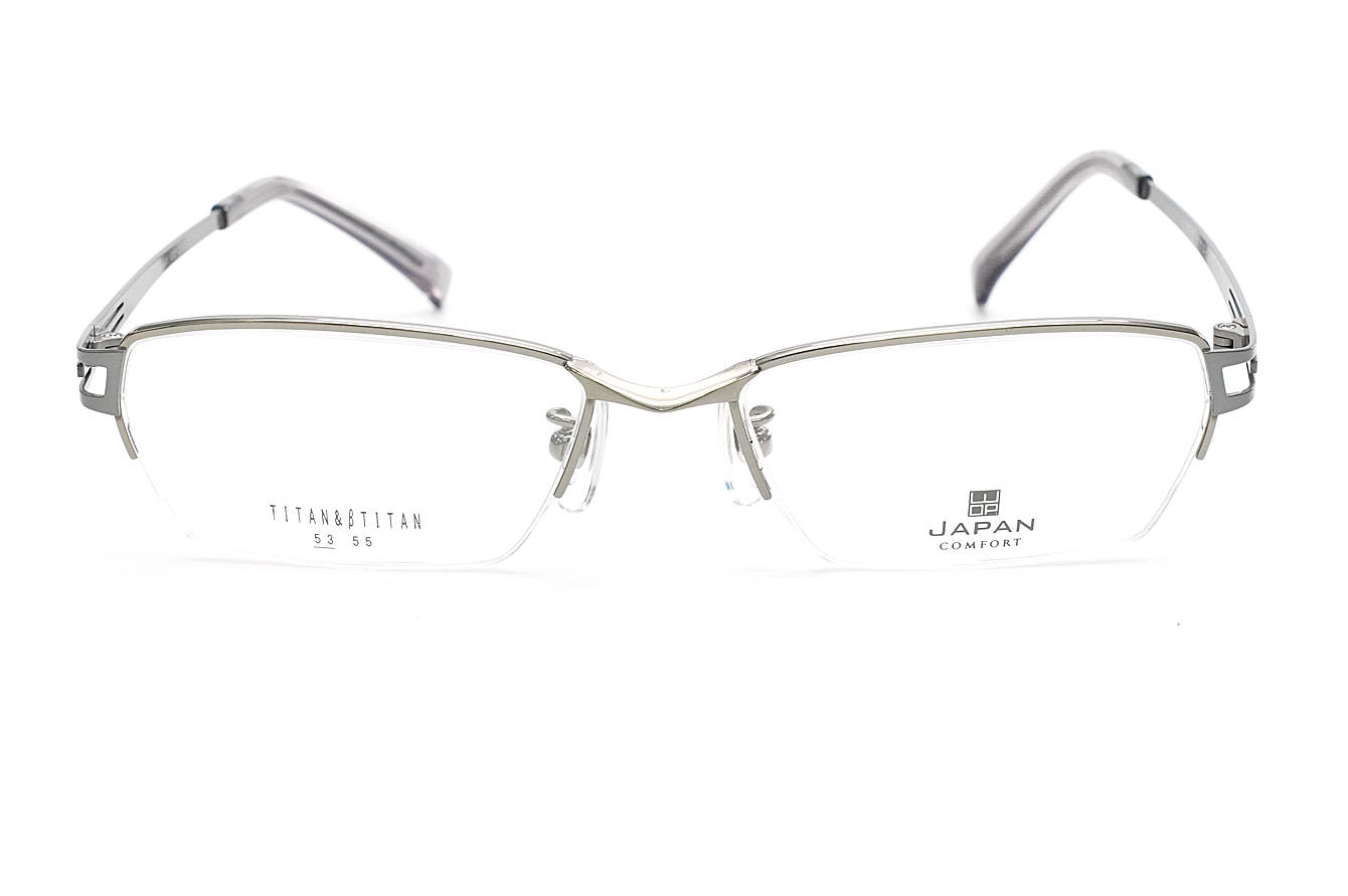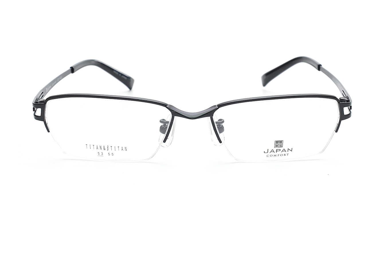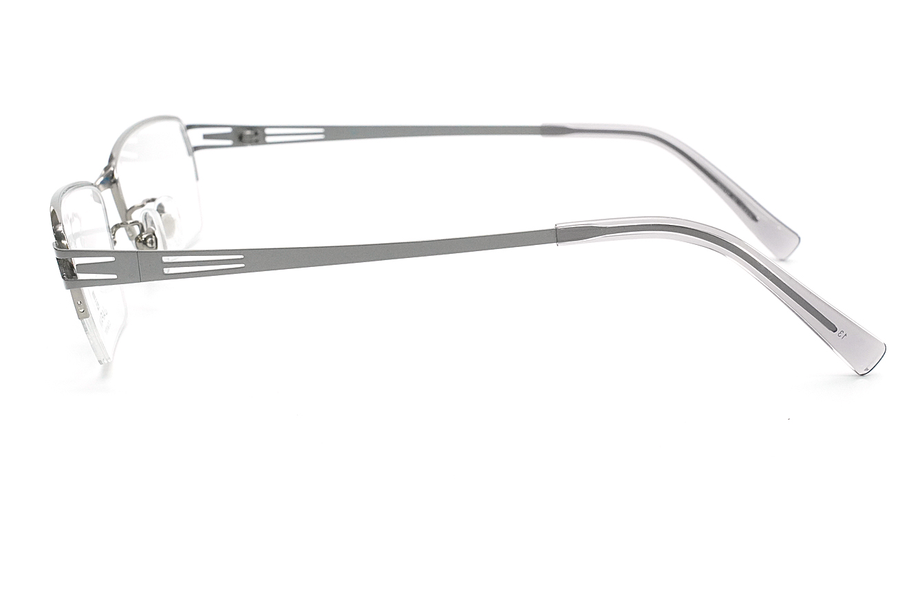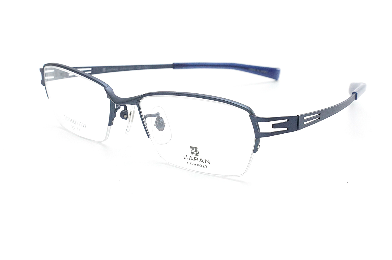 シャープな抜きデザインのテンプルが特徴のメンズ向けスタイリッシュなフレームです。βチタンのシート材を使用したバネ性のあるヨロイ・テンプルです。