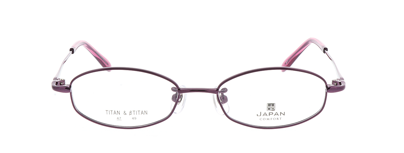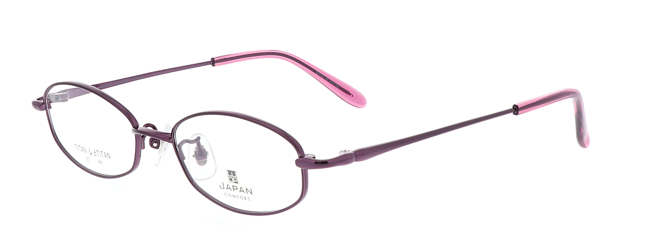 女の子向けのシンプルで小ぶりなデザインで学生さんにも掛けやすいデザインです。テンプルはβチタン製なのでしなやかな掛け心地です。