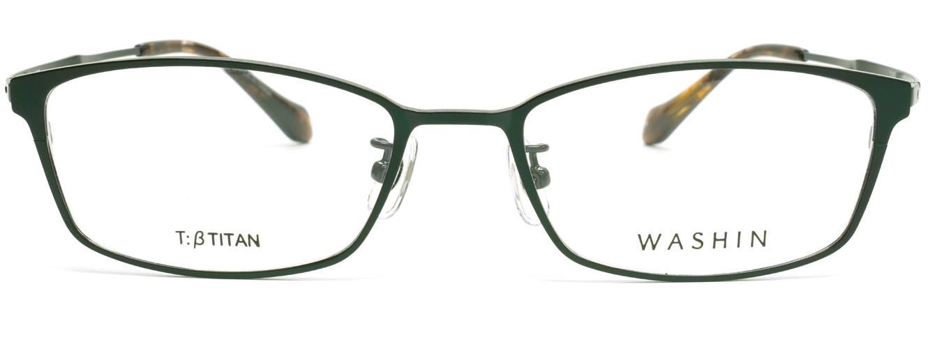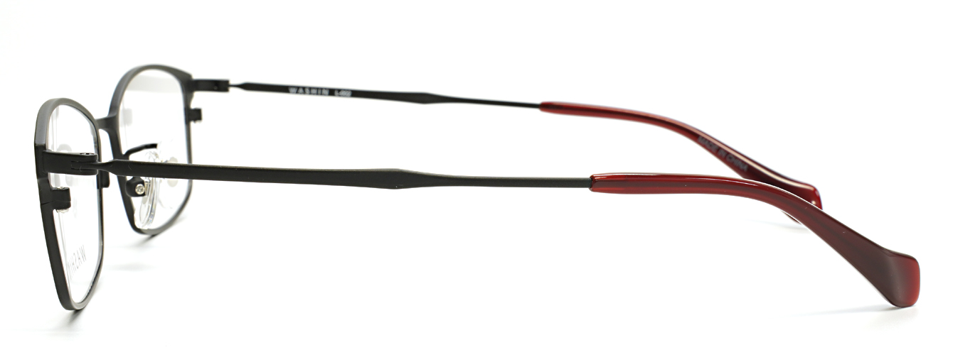 一体成型フロント×テンプルβチタンのスクエアフレーム。マット仕上げのフロントデザインはシンプルな中にも程良いシャープさを演出してくれます。