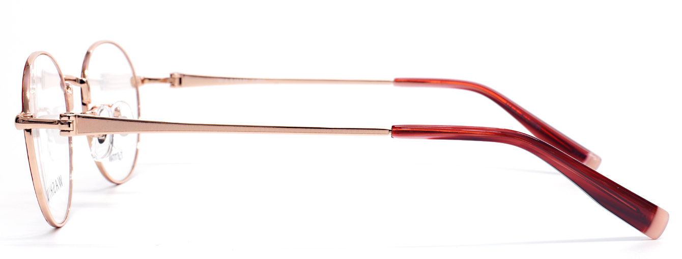 円柱形の丁番が品をプラスしてくれる大人カジュアルなデザイン。テンプルの表面をマット仕上げとした細部へのこだわりも。テンプル素材はβチタン製で掛け心地にも配慮されています。ステンレスの細リムにリムカラーをのせた繊細な表情も魅力です。