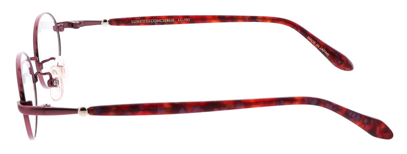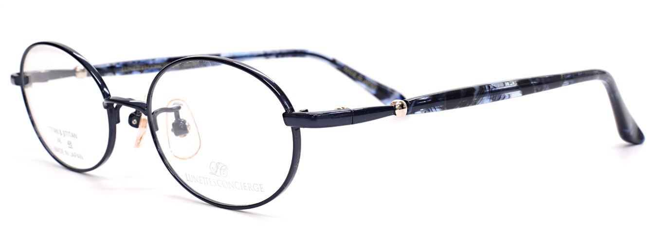 程よい天地幅のナチュラルなオーバール型は、ファイスバランスを整え自然に見せてくれる魔法の玉型。テンプルの球体の飾りが、シンプルな中にさりげなく華を添えます。