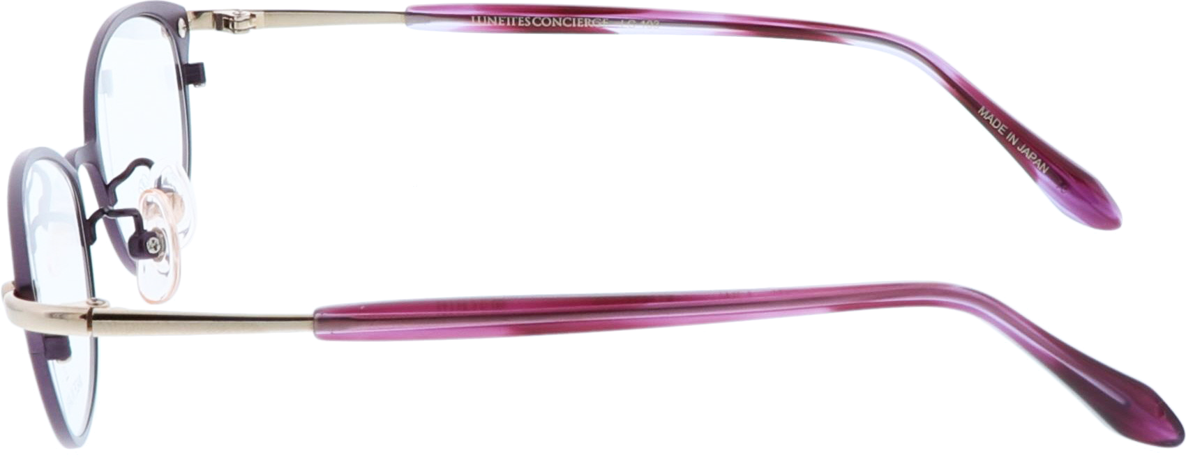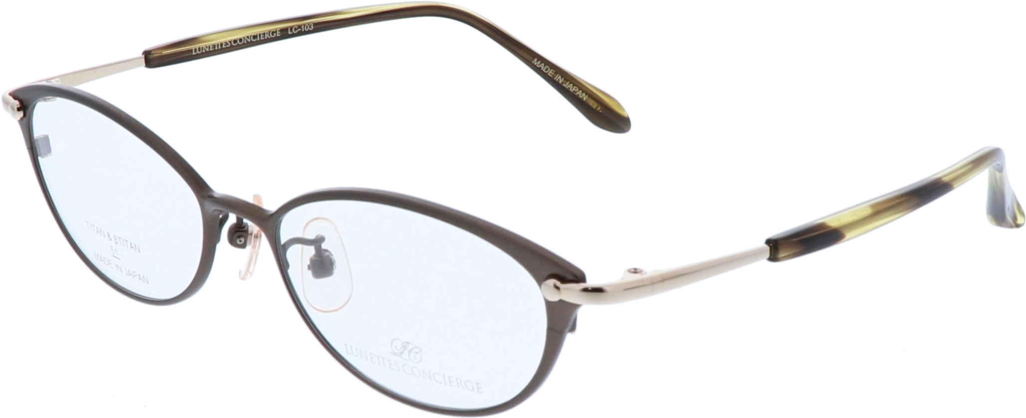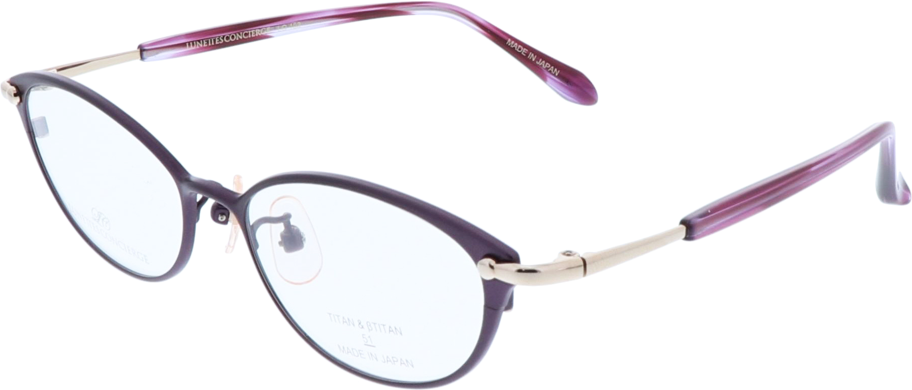 一体成型のフロントに球体モチーフのヨロイを合わせ、クラシックテイストを上品にアレンジしたデザイン。柔らかな印象でありながらリフトアップ効果を発揮する玉型。テンプルはβチタン製でしなやかな掛け心地。