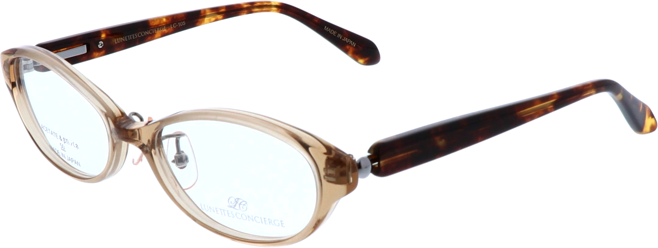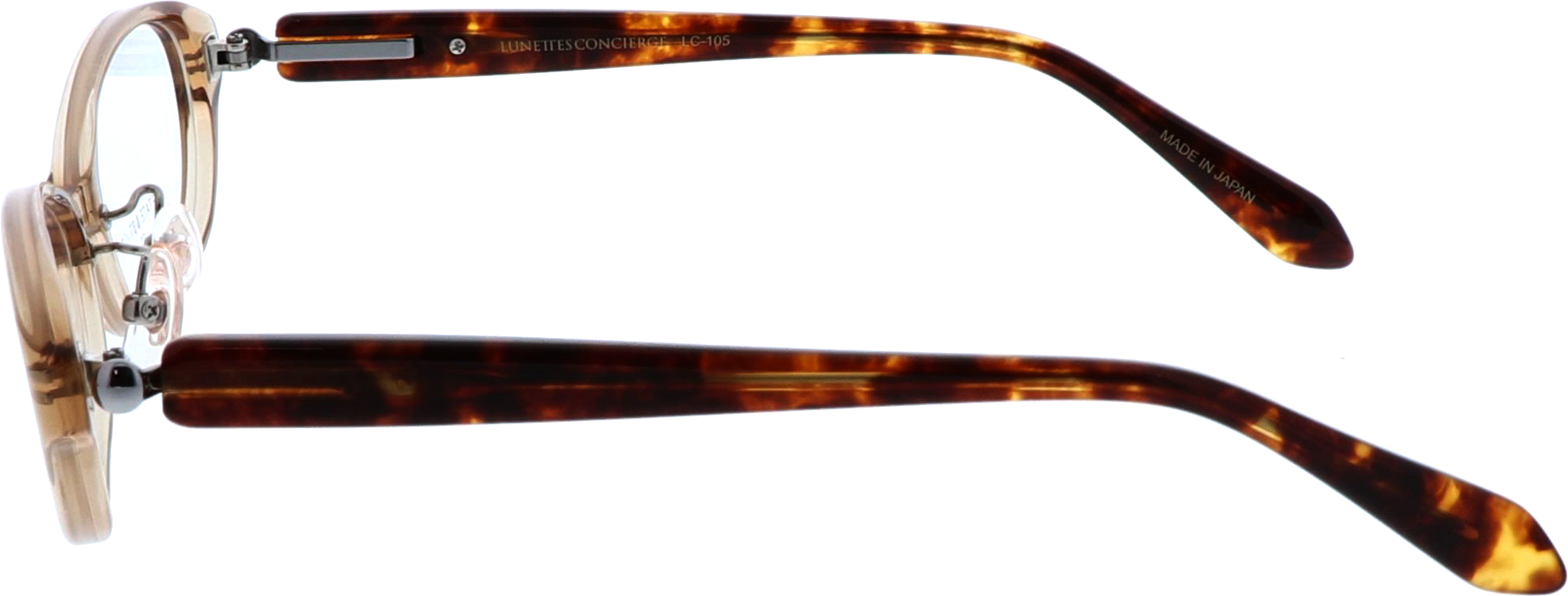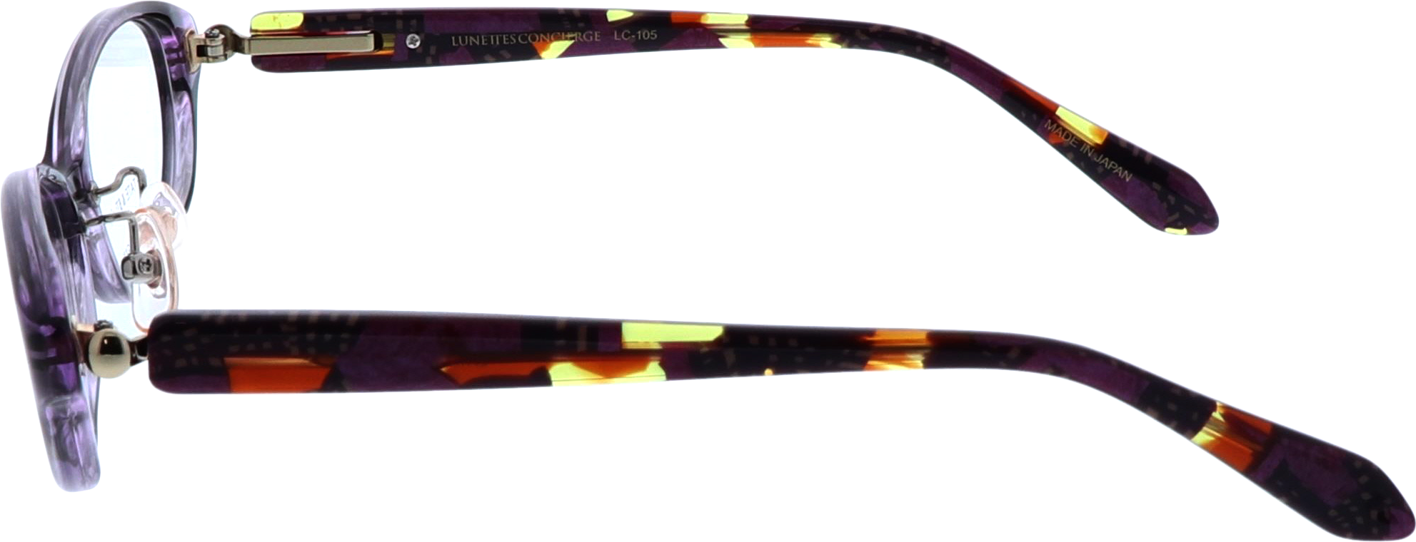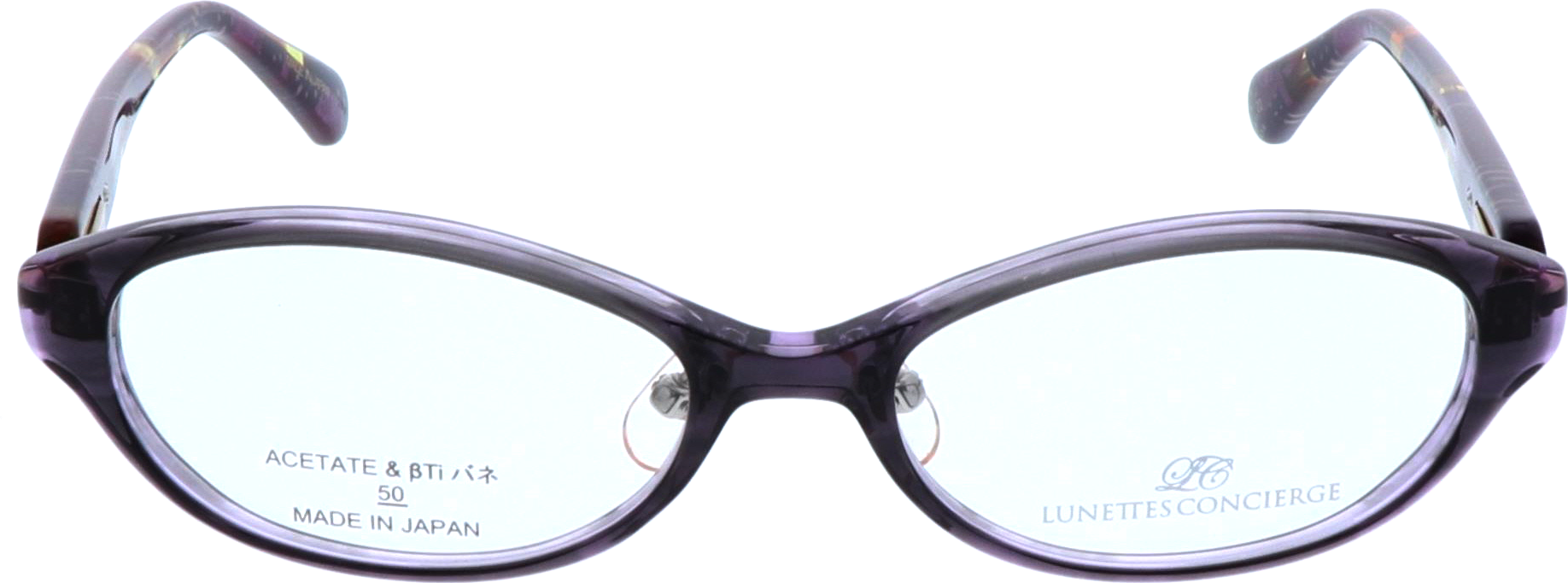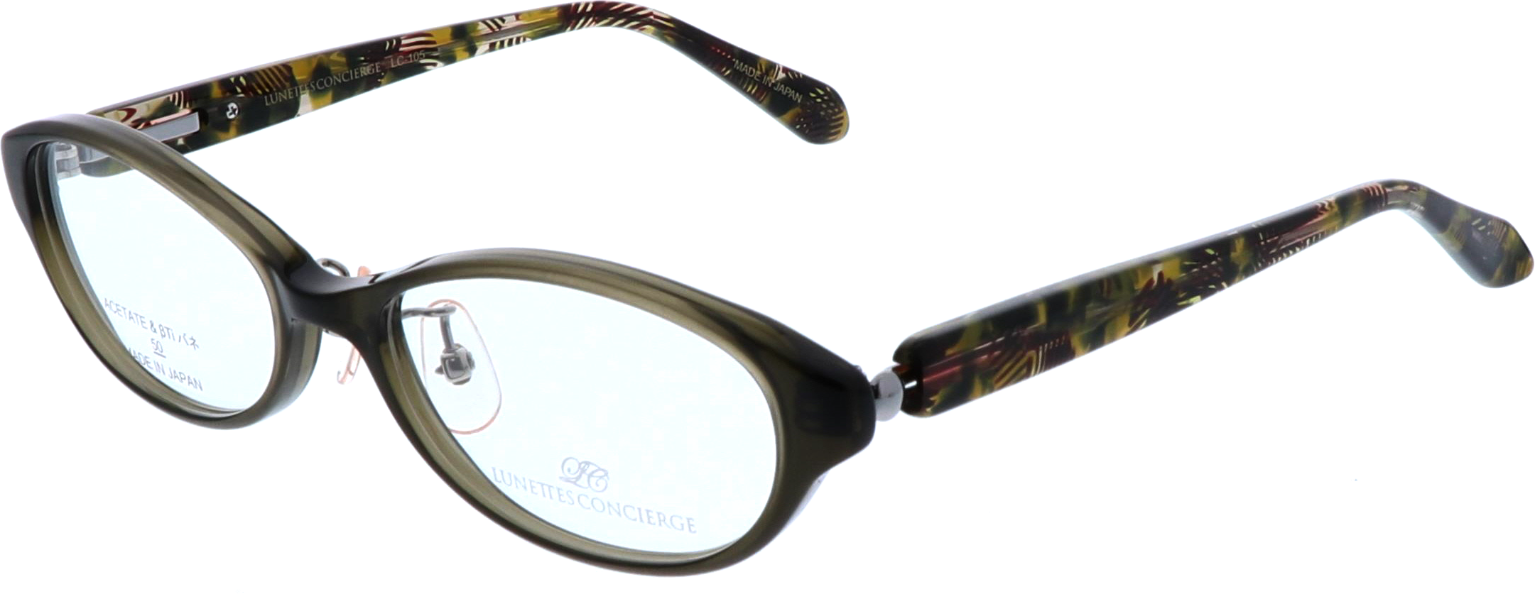 単色系の透明感あるフロントと、華やかな色味の個性的な柄生地のテンプルの組み合わせがお洒落デザイン。 ナチュラルでフェミニンなレンズシェイプは、アンダーリムが上昇ラインでリフトアップ効果もあります。
