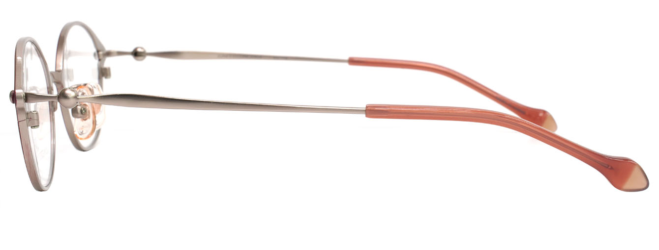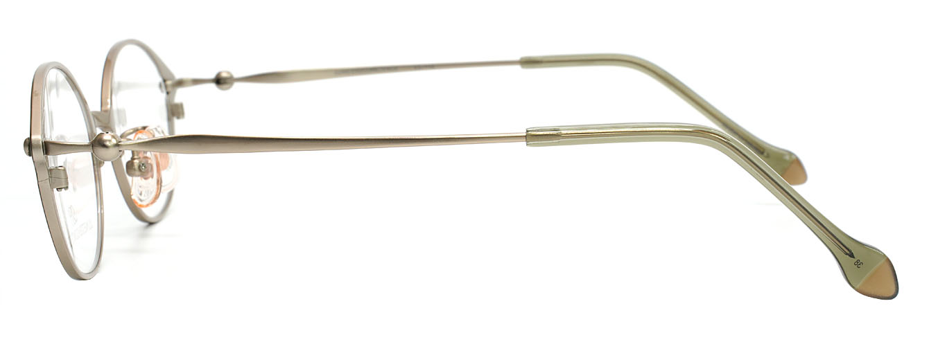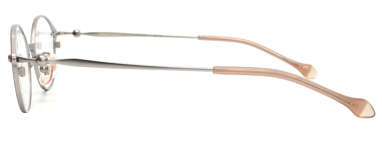 「アイメイク」をテーマにした目元を美しく魅せるデザイン。リムサイドの彫りデザインが「目幅拡張アイライン」効果で大きくキレイな瞳を演出。ブランドアイコンの「球体」をデザインに落とし込んだジュエリー的なヒンジが目を引きます。