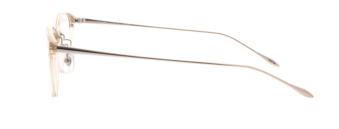 フロントに薄くて軽量なポリアミド樹脂を使用し、テンプルには細身のβチタンを使用。モダンの無い、金手のままのシンプルなデザインとなっています。(モダンを使用しておりませんが、電着塗装を施し金属アレルギー対策をしております。)全8カラーと豊富なカラーバリエーションからお選びいただけます。