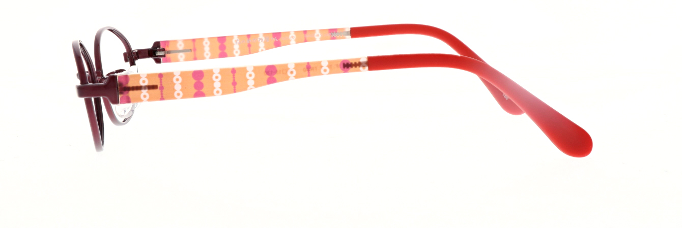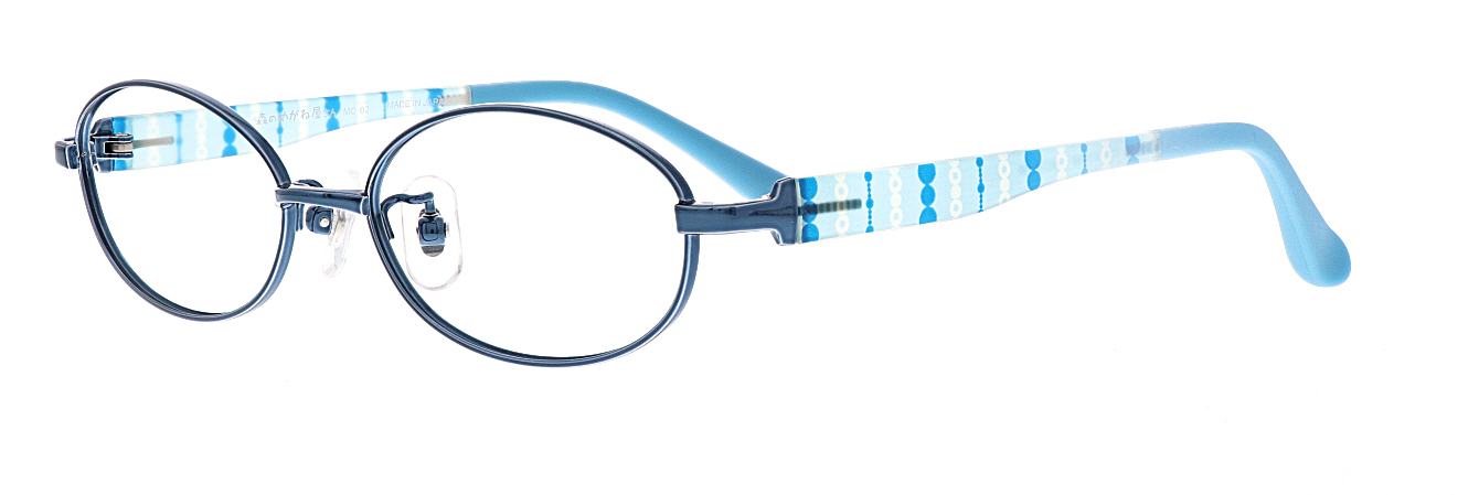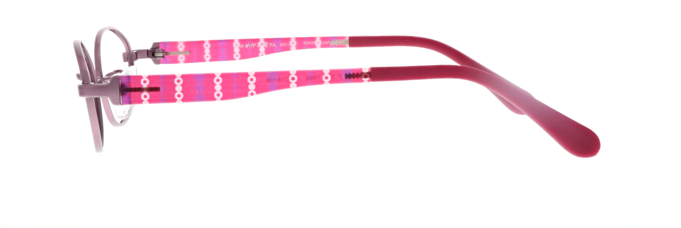 チタンフロントと軽量樹脂の組み合わせで軽く掛け心地の良いフレームです。TR素材の透明感を活かし、彩り豊かなプリントを施したした楽しいデザイン。モダンはグリップ力に優れたラバロン素材。パッドは滑りにくいウェーブ形状。