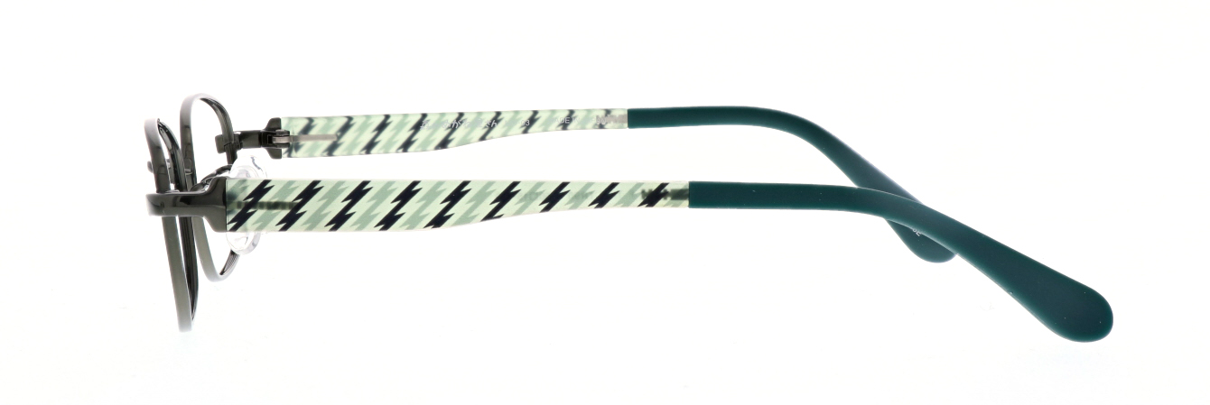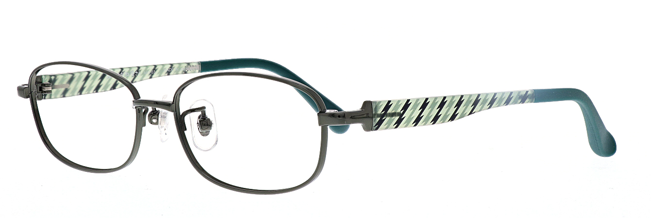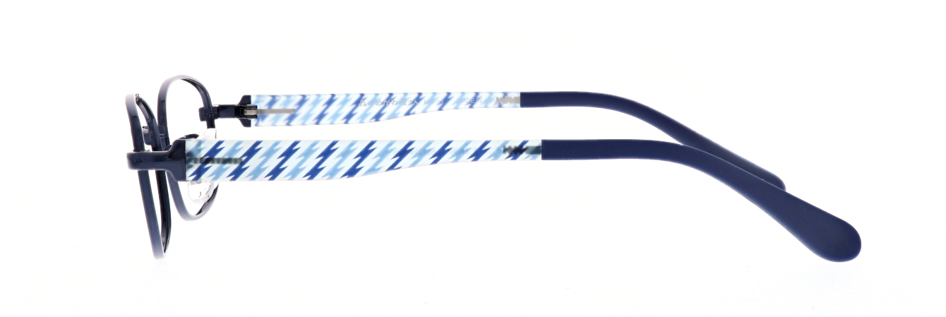 チタンフロントと軽量樹脂の組み合わせで軽く掛け心地の良いフレームです。TR素材の透明感を活かし、彩り豊かなプリントを施したした楽しいデザイン。モダンはグリップ力に優れたラバロン素材。パッドは滑りにくいウェーブ形状。