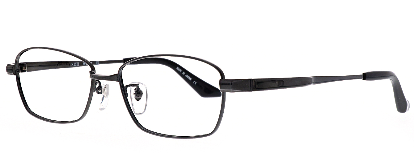 テンプルβチタン、フロントチタン、IPメッキの純国産フレーム。ミドル向けのスマートな玉型です。エッジの効いたヨロイ&テンプルデザインがスタイリッシュです。