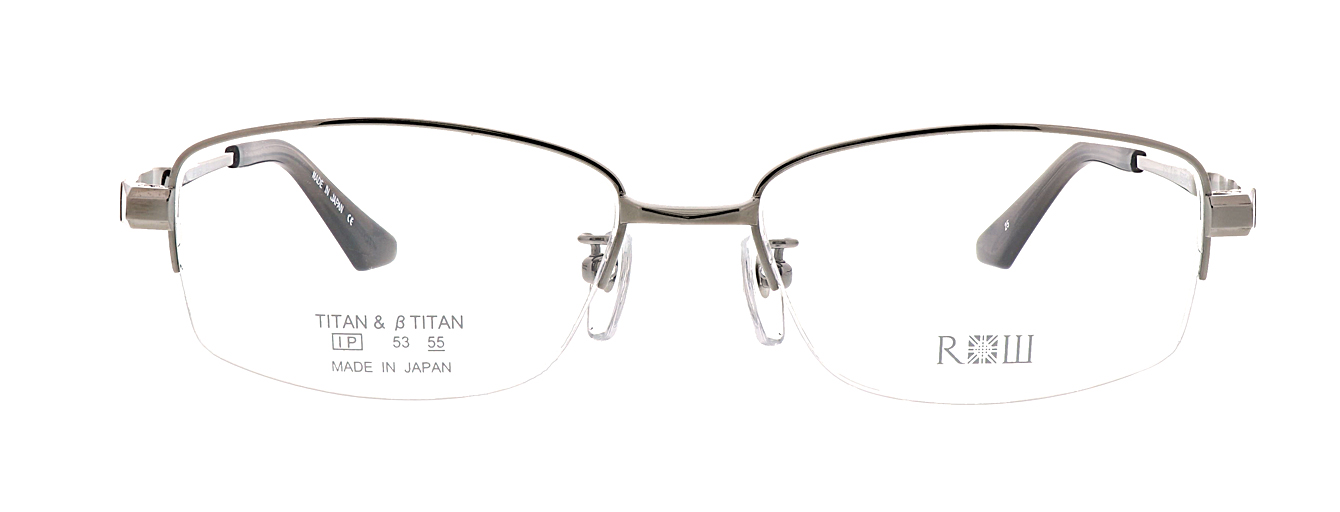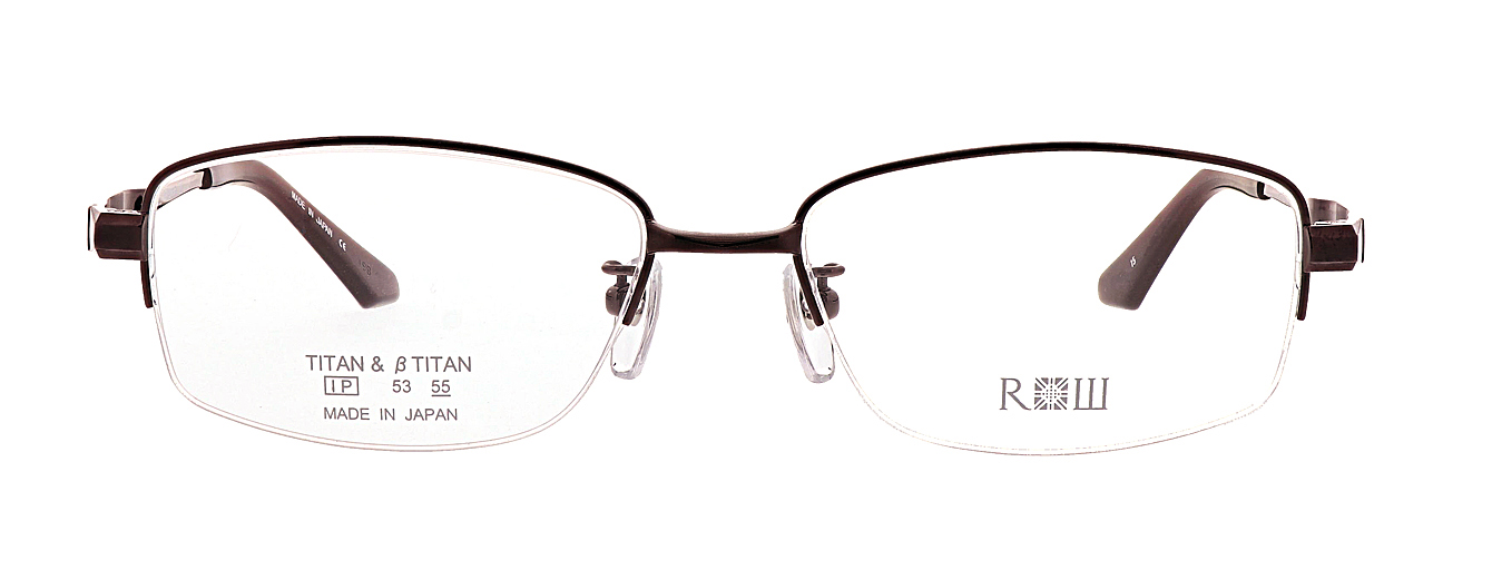 テンプルβチタン、フロントチタン、IPメッキの純国産フレーム。ミドル向けのスマートな玉型です。エッジの効いたヨロイ&テンプルデザインがスタイリッシュです。