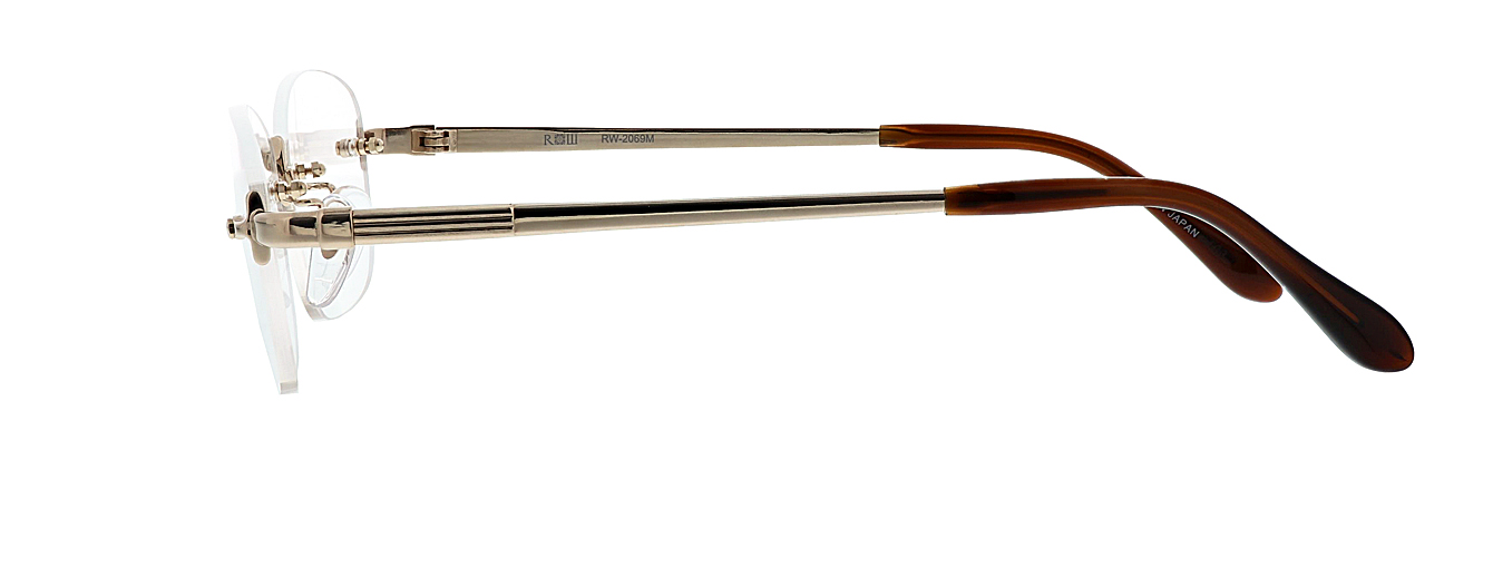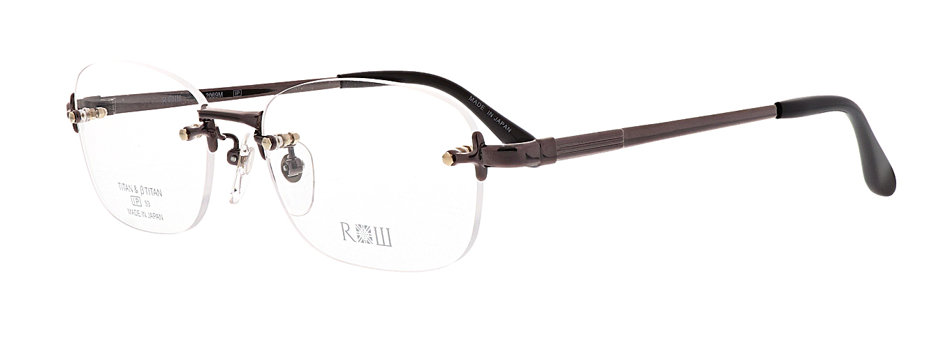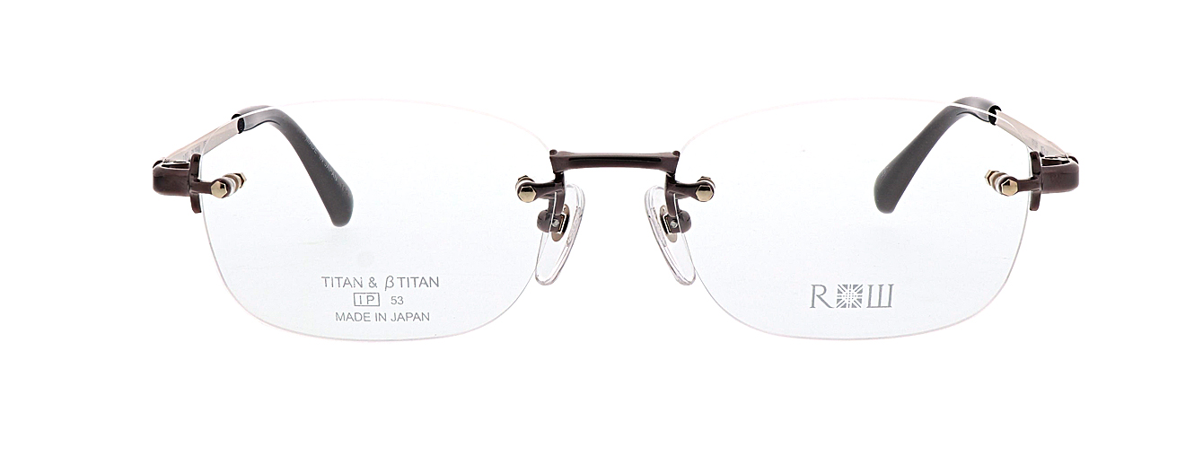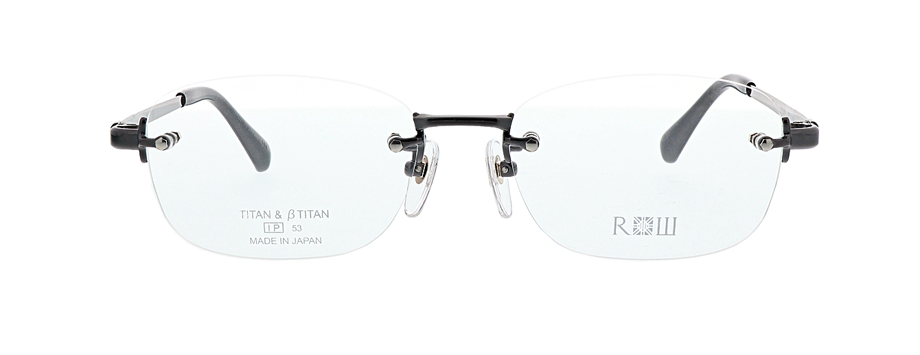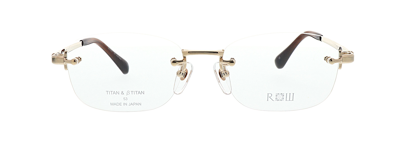 お顔の印象を変えないふち無しフレーム。フロントパーツはチタン、テンプルは弾力性のあるβチタン製なので、掛け外しの際のテンションを逃し、レンズへの負荷を軽減してくれます。表面処理はがれにくいIPメッキを採用(C1除く)。
