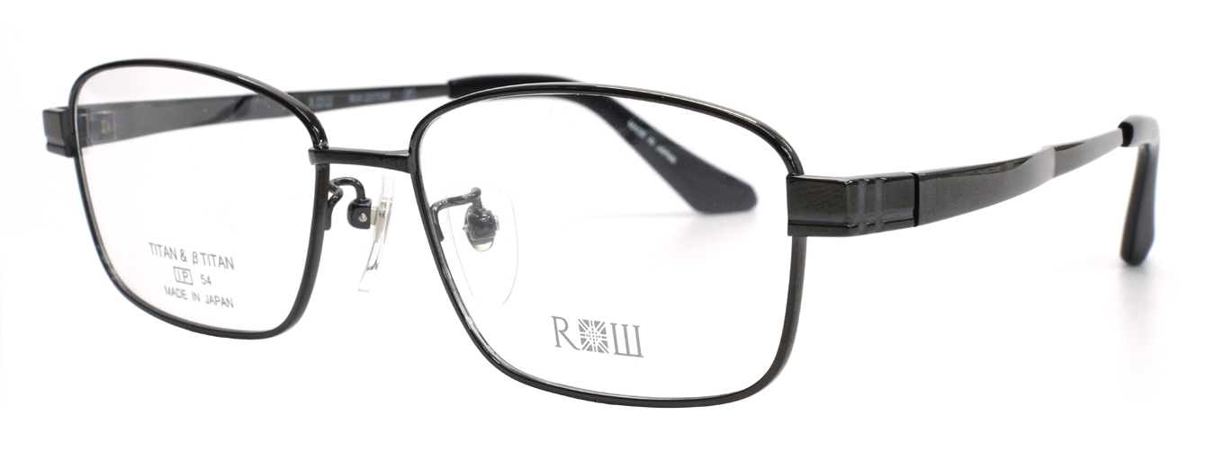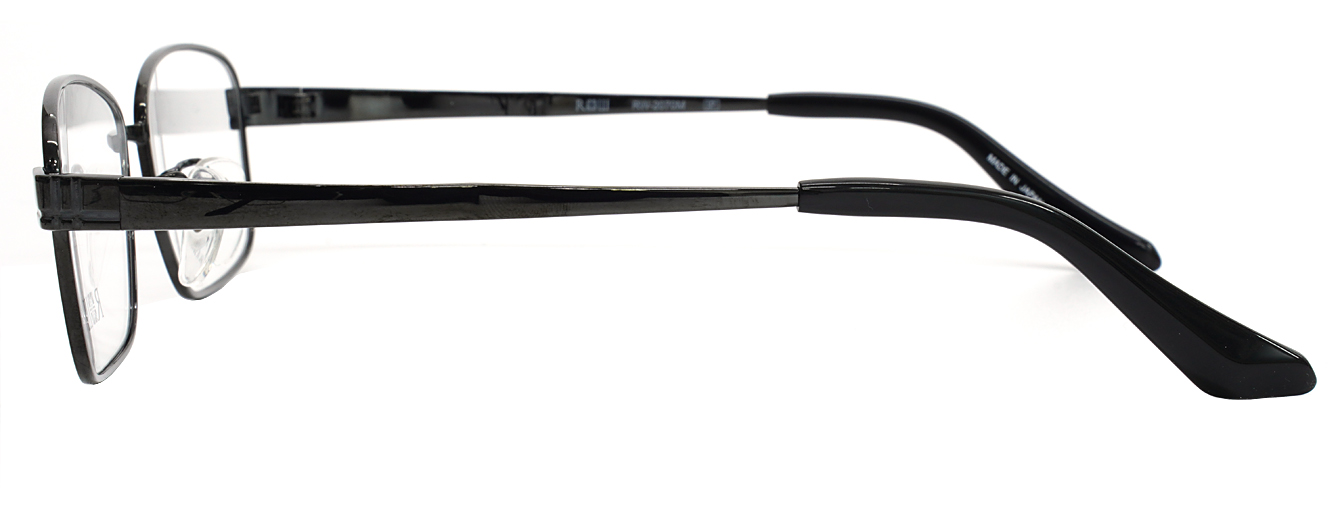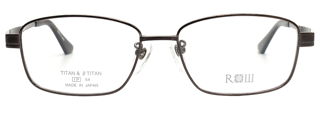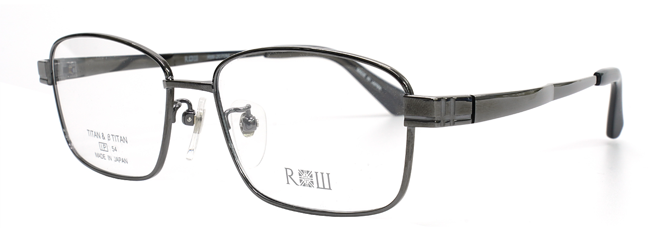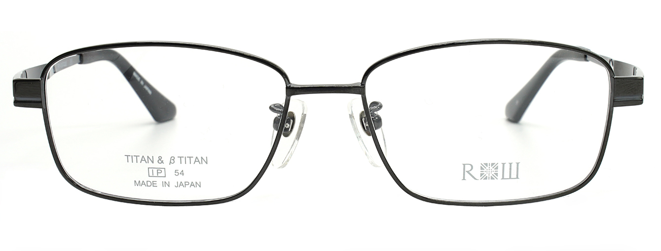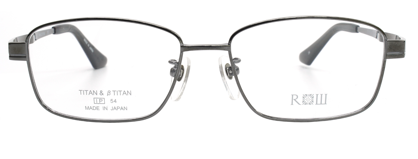 テンプルβチタン、フロントチタン、IPメッキのMADE IN JAPANのフレーム。玉型はスマートなスクエアシェイプ。テンプルは抱き込み形状で、βチタンのしなやかな掛け心地をより引き出したデザインです。